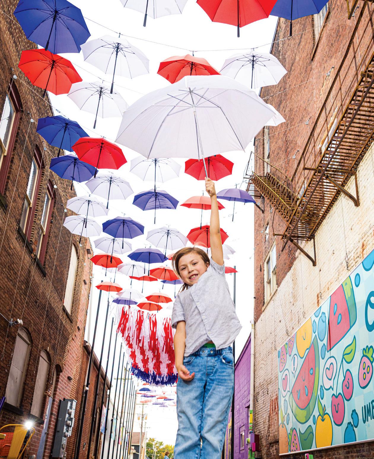 For a vibrant public art installation, look no further than Umbrella Alley in Louisville. The once uninhabited alley now dazzles, thanks to the city and many citizens, businesses and artisans that came together to install nearly 200 colorful umbrellas in a photo-worthy display. This whimsical spot serves as a gathering place with murals, tables and chairs, a kids’ play area and a piano open in the summer for maestros. The alley is free, so stop by to enjoy the nearby shops and restaurants, explore the artwork and return to see special feature displays, like the beautiful red, white and blue umbrellas to celebrate America 250!