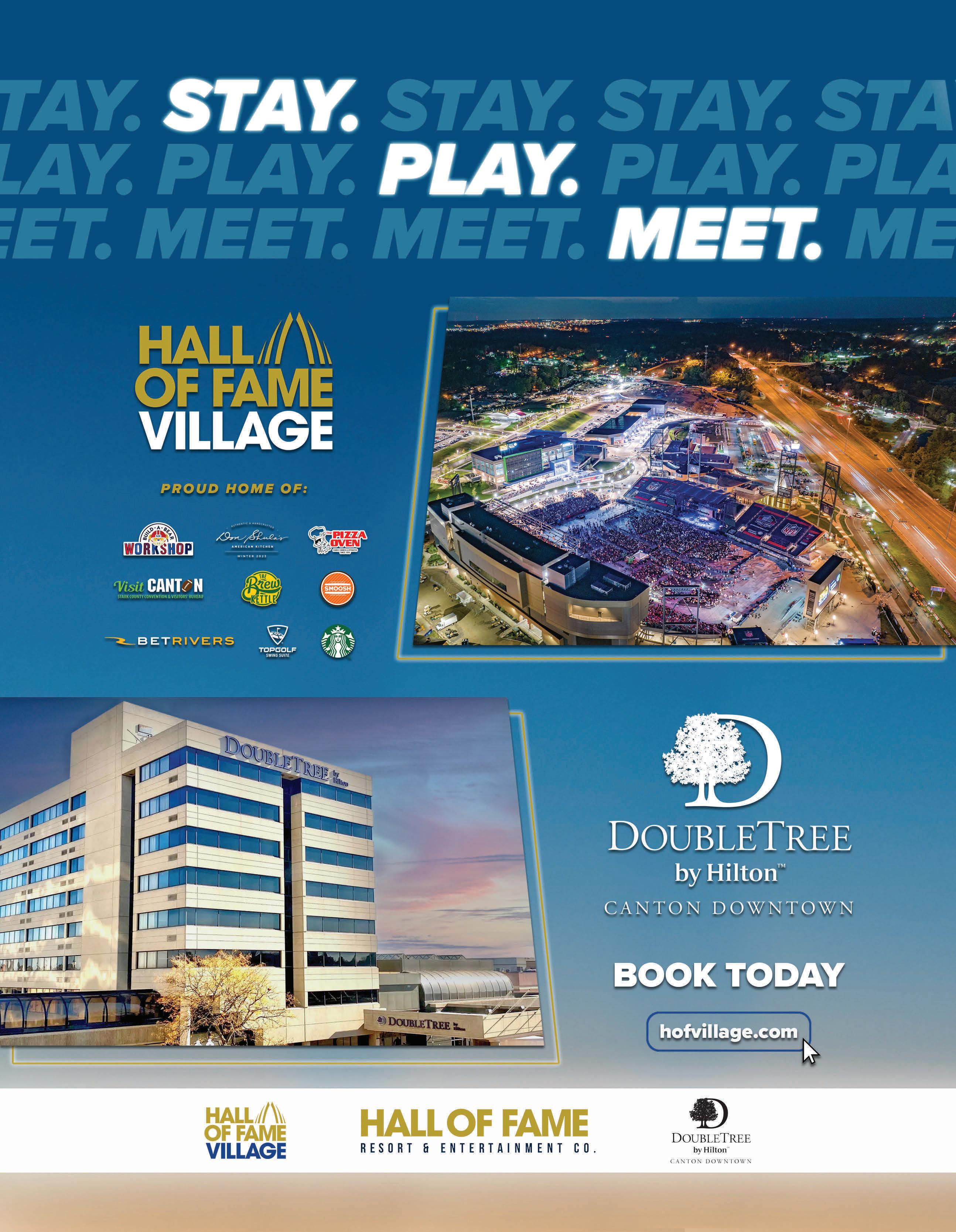 2023 Official travel guide Ohio Hall of Fame Village New & improved SOAR ON THE ZIP LINE OR FERRIS WHEEL AFTER YOU VISIT THE PRO FOOTBALL HALL OF FAME. EXPLORE EXCITING NEW DESTINATIONS AND REDISCOVER LOCAL FAVORITES AS STARK COUNTY CONTINUES TO GROW. Stark County Convention & Visitors’ Bureau Canton Canton