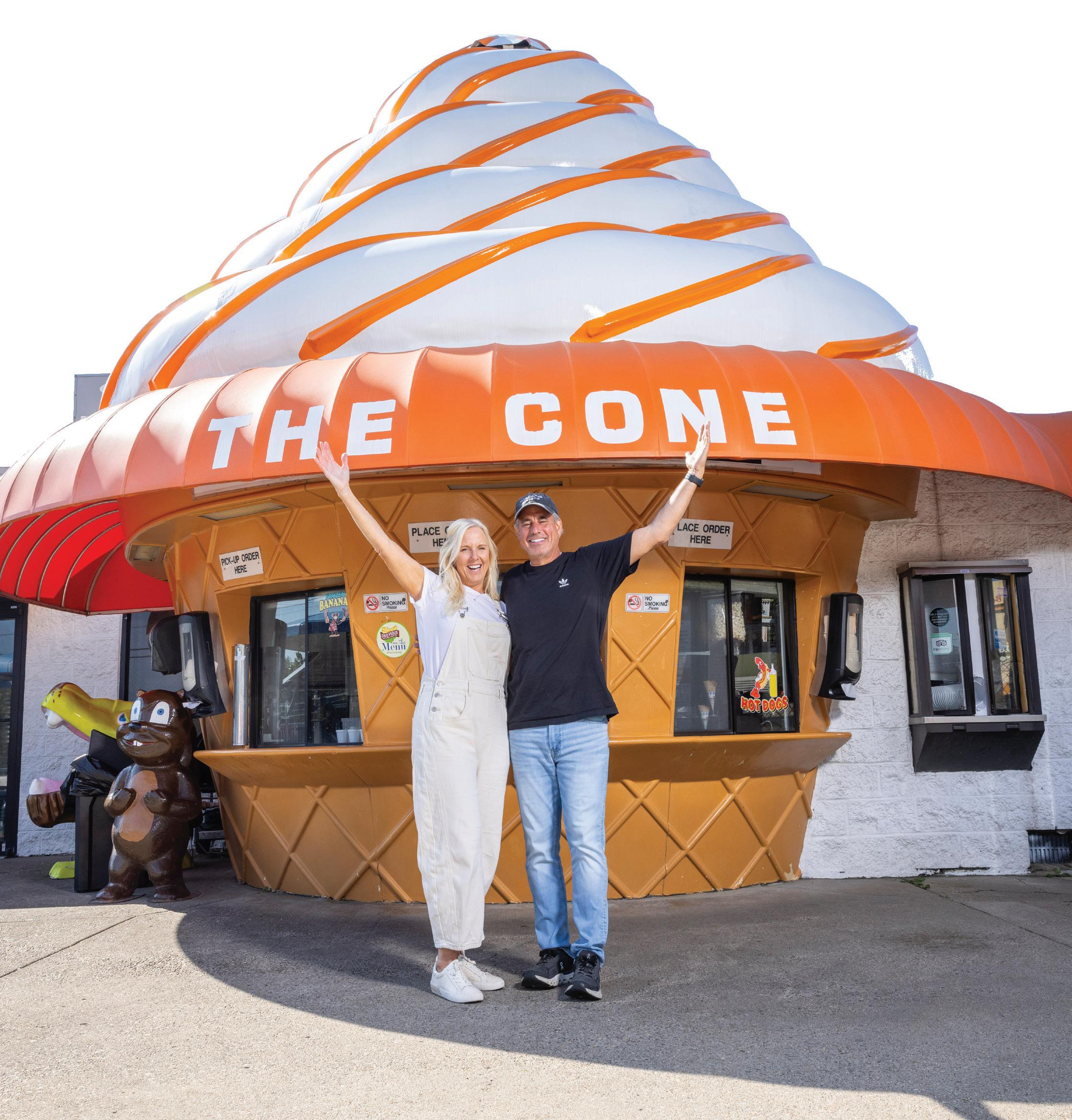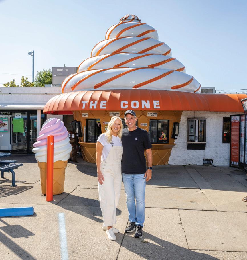 As the new proprietors of The Cone in West Chester, local entrepreneurs, Beth and Mike Heydt, are proud to be carrying on a decades-long legacy. A local institution with its iconic orange-and-white swirl building, The Cone has been doling out soft serve ice cream and treats since 1973. It continues to serve the signature orange and vanilla swirl, and other seasonal flavors and treats, from April until October.