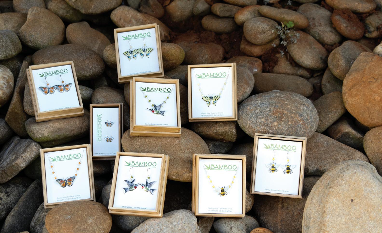 This charming collection of silver cloisonné jewelry is made of recycled silver using classic techniques. Multicolor blending depicts the vibrance and dimensionality of these natural subjects. Each handcrafted piece is enameled front and back for strength and comes packaged in an eco-friendly bamboo gift box lined with anti-tarnish fabric.