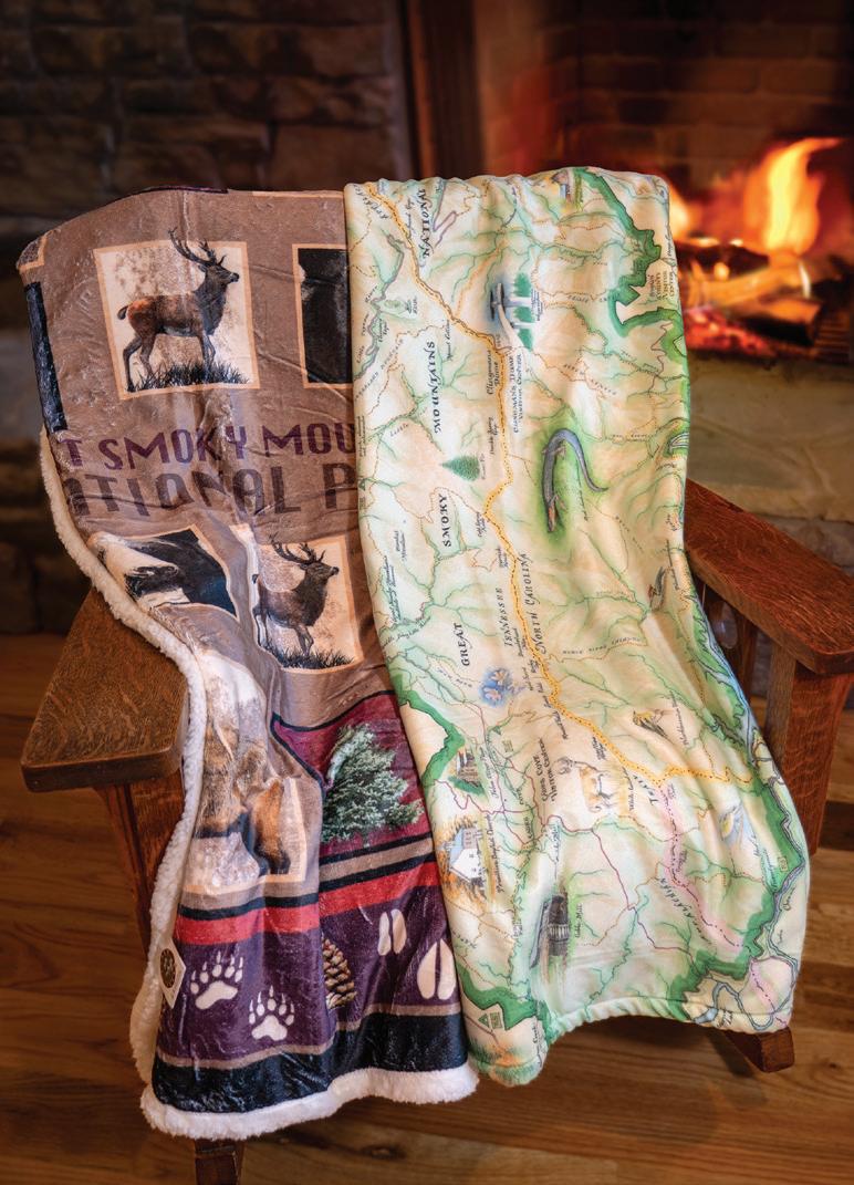 Like a sleeping bag without those annoying zippers, the Smokies Life puffy blanket (shown on cover) is ready to keep you warm and comfy while camping and on road trips and is perfect for picnics or stargazing.