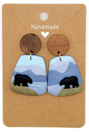 Bear with trees earrings #600303 • Fall leaves earrings #600307 • Fall leaf with bear earrings #600297 • Camp earrings #600305 • Bear with mountain scene earrings #600309 • Violet post earrings #600315 • Dogwood post earrings #600314 • Black-eyed Susan earrings #600317 • Daisy earrings #600316
