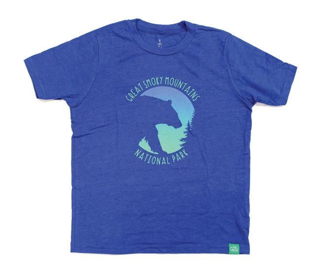 In a rich shade of royal blue, this black bear silhouette t-shirt features the iconic wildlife of Great Smoky Mountains National Park. Available in youth sizes.