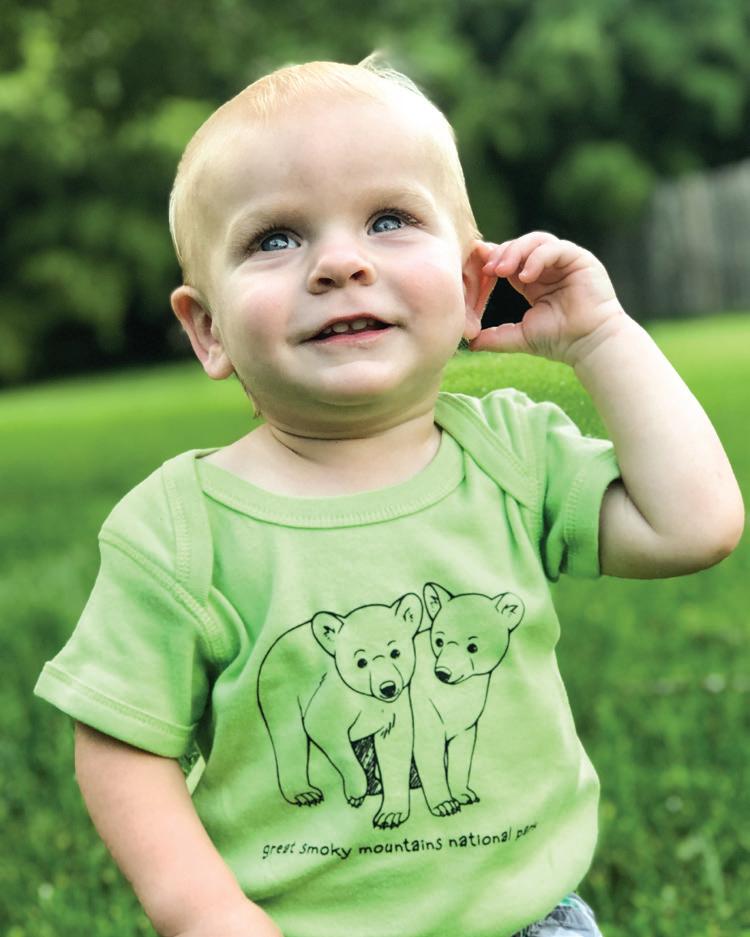 This onesie has all the necessary features parents need: a reinforced three-snap closure at the bottom that makes diaper changes a cinch, lap shoulder design that makes the frequent changing of messy shirts quick and easy, and 100% washable cotton fabric. Cute, cozy, and supports the Smokies!