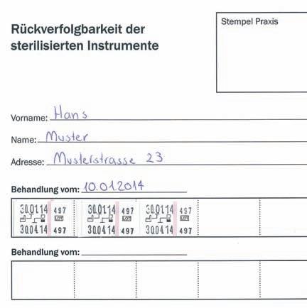 Formulare für das Registrieren der Sterilisationszyklen vor der Sterilisation nach der Sterilisation