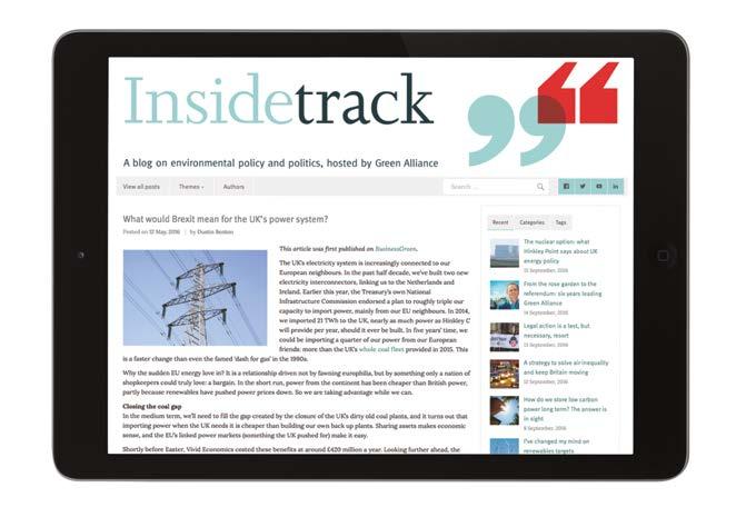 In 2015-16, our blog increased in profile as a leading outlet for informed opinion about current environmental policy and politics in the UK. We renamed it Inside Track this year, taking on the name of our former journal.