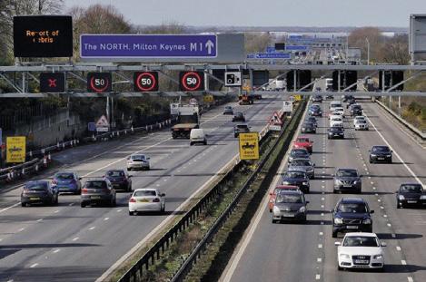 Highways England’s Active Traffic Management (ATM) system, piloted between junctions of the M42 near Birmingham, uses real time monitoring technology to direct and control the flow of traffic. At only 20 per cent of the cost of widening the road, this approach has cut journey times by 25 per cent, pollution by ten per cent and fuel consumption by four per cent.56