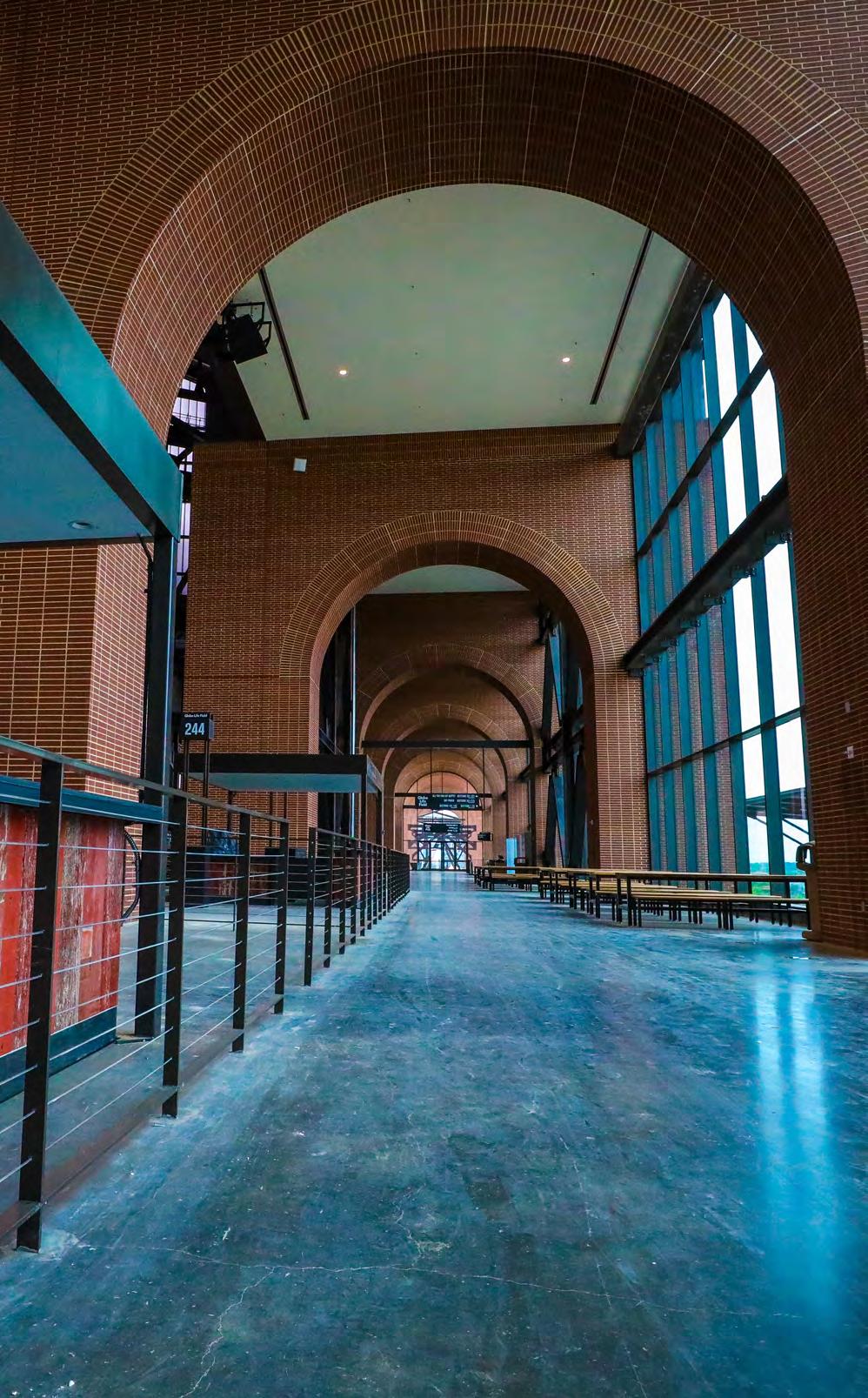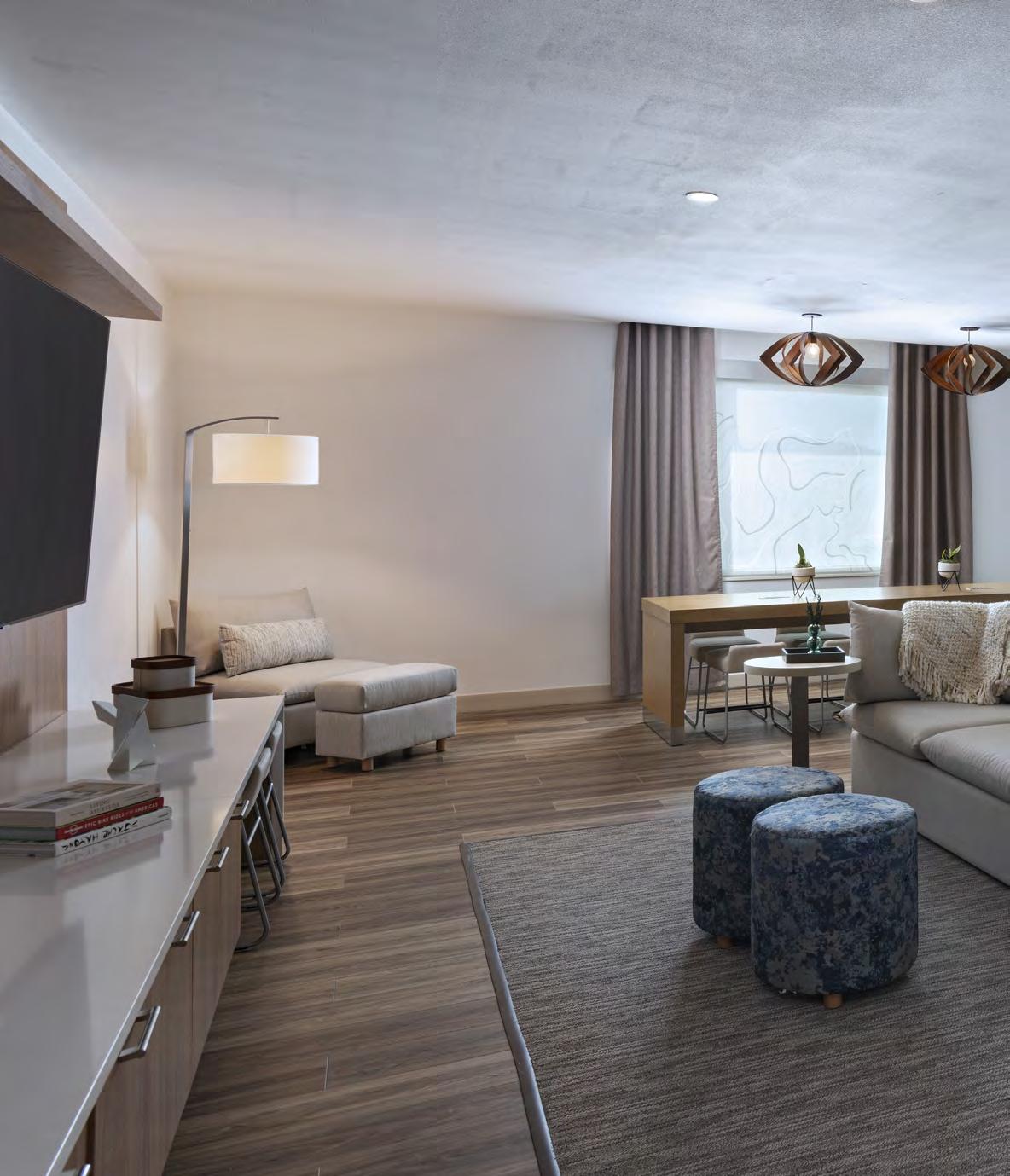 FOCUSING ON THE STRUCTURAL FEATURES, LIKE HIGH CEILINGS, BRICK WALLS, AND LARGE WINDOWS REDUCED MATERIALS USED FOR DESIGN.