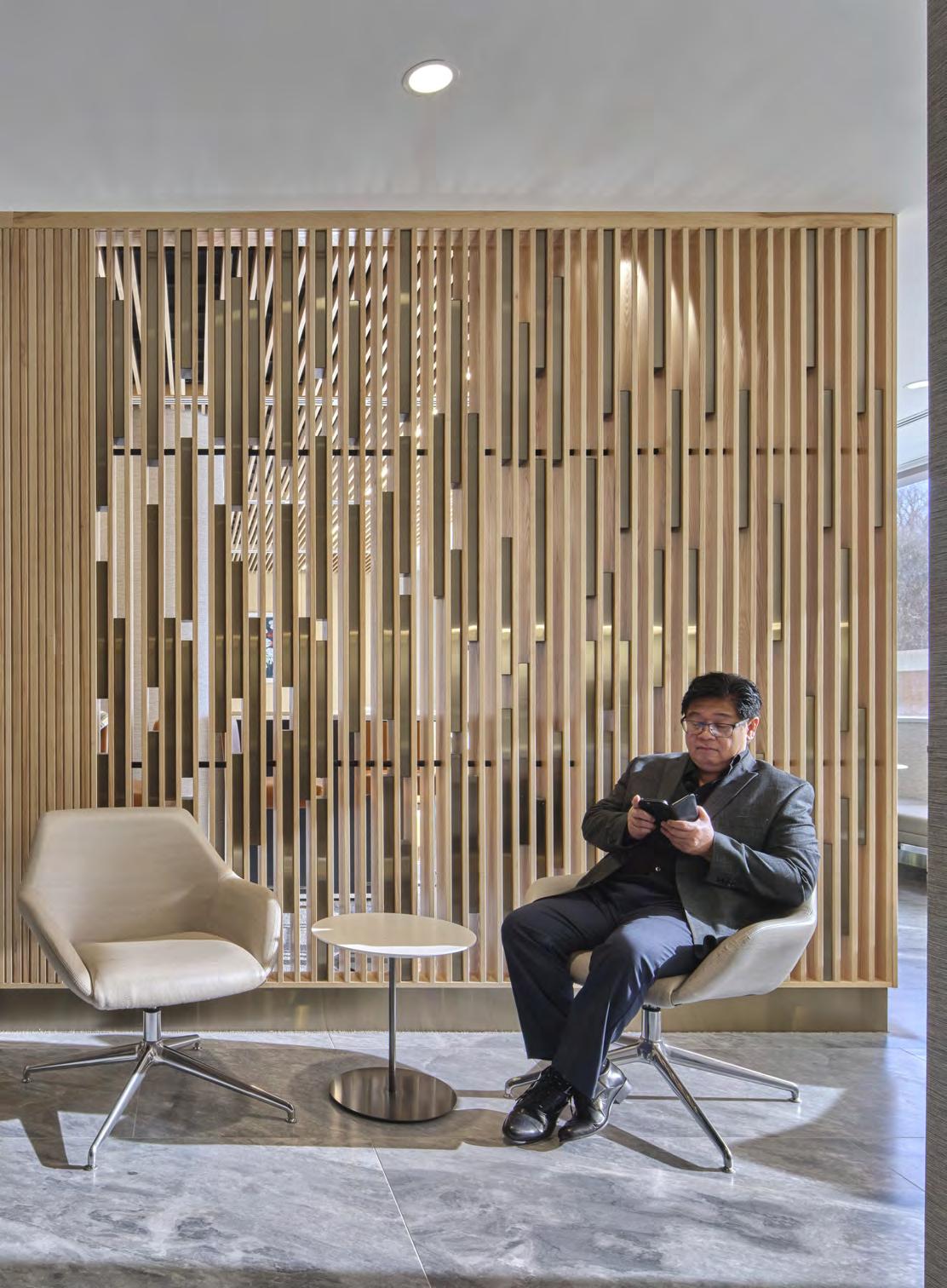 Many of our reconfigurations were geared toward enhancing the building experience. The original entrance layout was inconvenient for visitors who had to schlep all the way to the back for the elevators. We replaced the 50-year-old elevators and rearranged the layout to bring them further toward the front. We wanted to do everything we could to make the space feel better. The domino effect of our choices in the lobby made all of the upper floors more efficient as well.