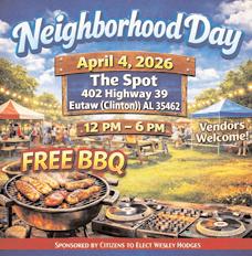 While serving attendees a delicious catfish dinner from Southfresh Fish Truck, Atkins gave the 2025 year review Highlights included the Christmas tree trail, Farmer ’s Market, King & Queen Cantina’s ribbon cutting, and Halloween on the square An upcoming event for the Commerce is on May 9, 2026, where the Chamber, the City of Eutaw, and Kelvin Scott will host a Community BBQ and Bicycle Ride The Commerce also recognized the following elected officials and candidates: Commissioner Tennyson Smith of District 1, Commissioner Roshonda Summerville of District 5, Eutaw City Councilman Lorenzo French, Eutaw City Councilwoman Carrie Logan, Attorney Robert Lee, Kelvin Scott, Larry Smith, Trey Diveley, and Rev Joe Webb