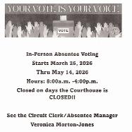 capped and elderly indiviudals for the Democratic and Republican Primary and Constitutional Amendment election held on May 19 2026 Pursuant to 5214-239 b) of the code of Alabama (1975), notice is hereby given of the following with regards to Greene County Alabama; The Probate Judge as Chief Election Official, makes it known in each voting district that as required Greene County Alabama, is in compliance with the availability of registration and voting aids for all handicapped and elderly individuals as stated in Code of Alabama, Section 21-4-23(b)