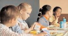 School children eating breakfast
