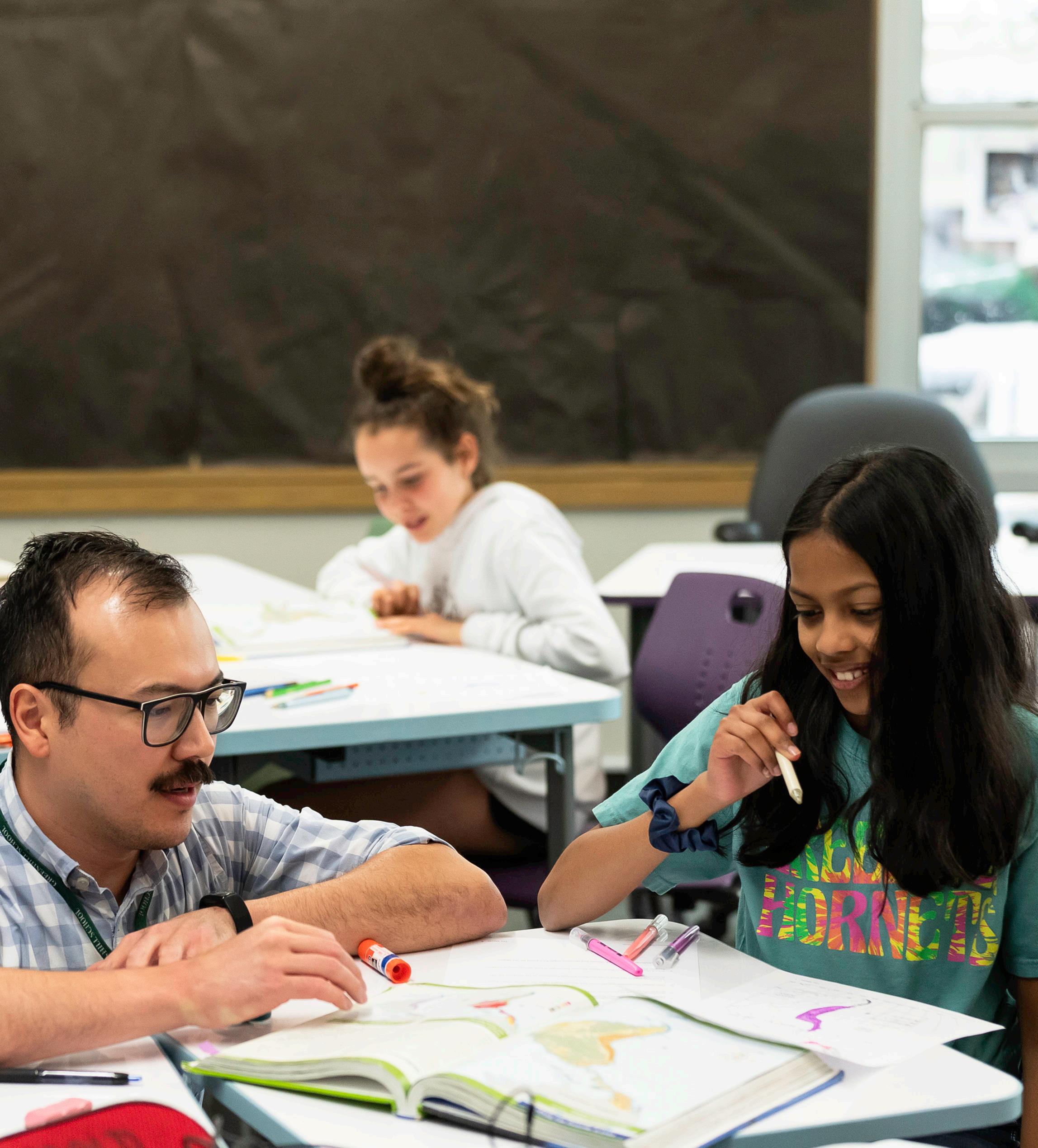 Our teaching is informed by current research and deep experience. We use innovative curricula and tools to increase engagement and develop critical skills. During kindergarten project-based learning units, students turn a classroom into a rainforest, diving into the concept of conservation. Second graders build miniature cities to learn about empathy and human needs. Fourth graders design rockets, then test them on the football field.