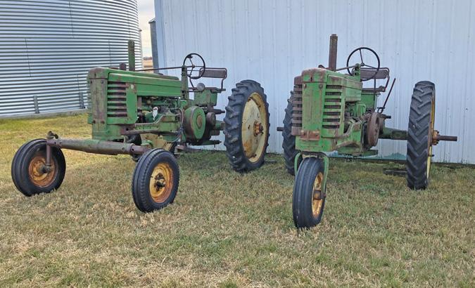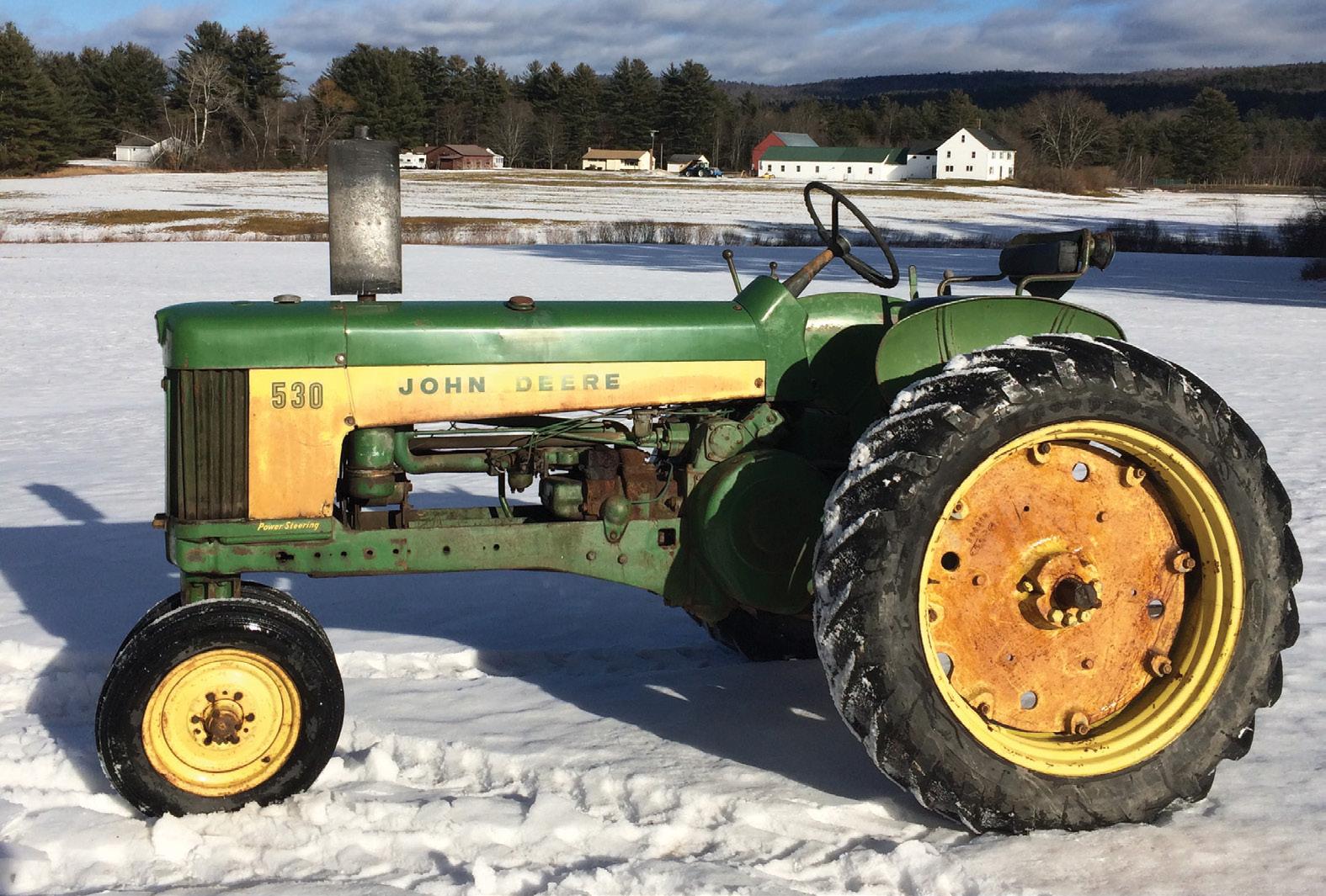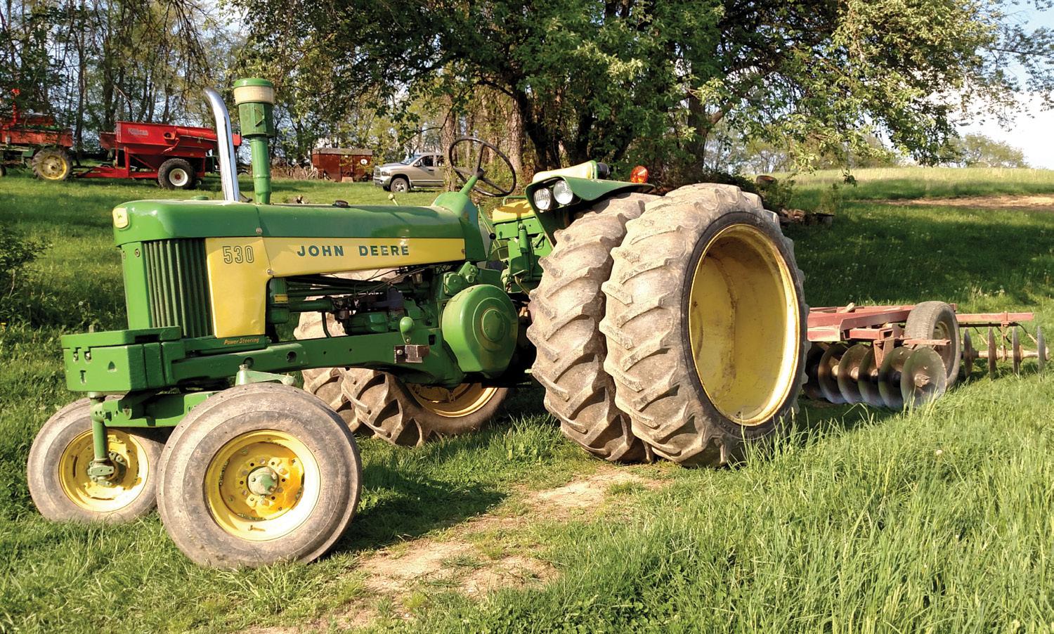 On our way back from picking up a John Deere “B” in Center, Nebraska, we saw a 530 that caught fire while raking hay just a few miles south of town (left). We ended up buying the tractor right then and there, just after the fire department finished putting it out. Using the “B” to load the 530, we were able to squeeze both tractors on the trailer. It is owned and was restored by Bryce Heithold in Wayne, Nebraska (right).