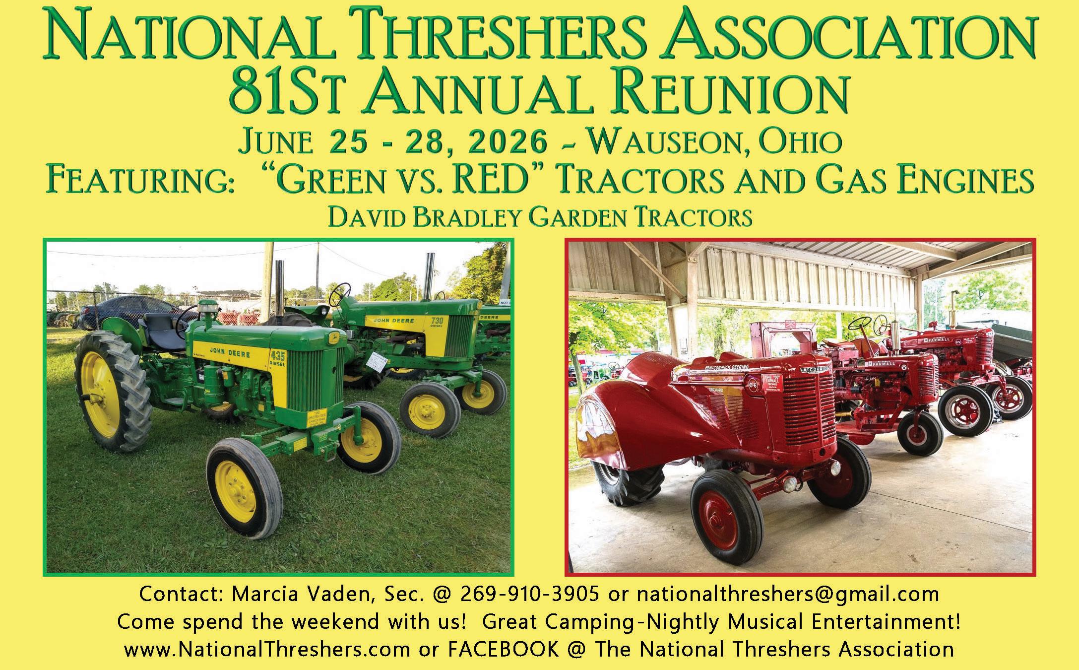 Show: Eastern National Expo, 9 Show: Gathering of the Green, 37 Show: Greater Minnesota Two-Cylinder Field Days, 9 Show: National Threshers Association Reunion, 14