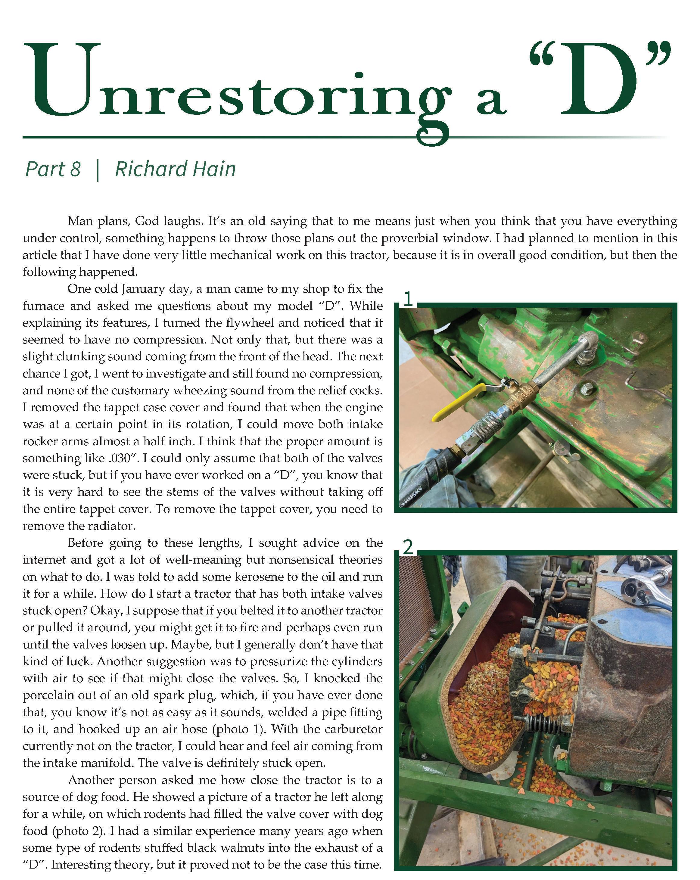 8/24 ......................... 7020 ................................. Innes Constant power .....................620 head repair ................................ Disassemble or start ............. Early Precision models 9/24 .......................... 430 ...................................... The H runs again ...........................Valve springs ................................... Fix for faded paint ........................ Plastic 730 10/24 ........................ 520 ........................................... D crawlers ................................. 720 brakes ................................... Head and carb repair .................. Albert City show 11/24 ....................... 2010 .................................... Lanz 150 combine ....................... 720 hyd. pump ........................................ NG brakes........................... Front rockshafts 12/24 ....................... 4000 .................................. Thresher to combine ....................... RW disc resto. ........................................ Misc. parts ....................... Snowmobile clothes