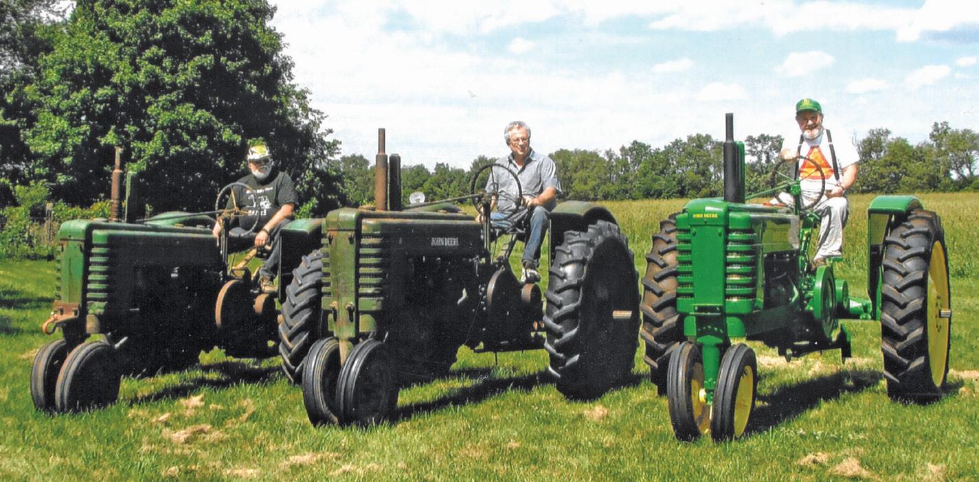 In the photo are three John Deere model “Bs,” from left: Steve Gazdag on his 1941, Jerald Carveth on his 1941 and Steve Goodrich on his 1943. All came from the Farmer’s Trading Post (also known as Carleton Equipment), established in 1938 by Roy and Clair Carleton in Comstock Township, Kalamazoo County, Michigan.
