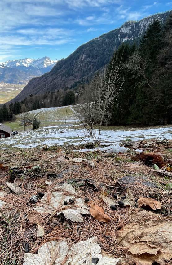 Certaines concentrations mesurées sont plutôt élevées par rapport à des résultats obtenus dans le cadre d’autres recherches sur des mammifères. En 2023, des scientifiques documentaient la présence de microplastique dans des crottes de lapins au Mexique, avec des valeurs moyennes en deçà de 10 particules par gramme1. Des analyses de crottes de loutres en 2024 en Autriche identifiaient en moyenne une dizaine de particules par gramme2. Des analyses de Greenpeace Asie de l’Est en 2024 sur des crottes de mammifères livrent des résultats médians souvent inférieurs à 10 particules par gramme3. La comparaison avec la présente étude doit rester prudente, car ces chiffres correspondent à des valeurs médianes de plusieurs échantillons collectés pour la même espèce, alors que les résultats présentés ici correspondent à un unique exemplaire. D’autre part, la méthodologie appliquée en laboratoire, différente selon les études, influence le nombre de particules détectées. Il est donc important d’insister sur le fait que ces résultats ont le caractère d’un instantané: un nombre restreint d’échantillons qui fournissent une première indication de la situation en Suisse. Cela dit, il est frappant d’obtenir une présence généralisée de microplastique avec des concentrations élevées dans un choix d’échantillons dont la sélection s’est faite de manière aléatoire. Nous faisons l’hypothèse qu’une étude plus systématique donnerait lieu à une situation sensiblement semblable.
