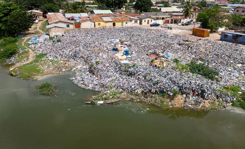 Die Fashion-Industrie lagert ihr Müllproblem in Länder des Globalen Südens aus, wo Textilmüll die Umwelt verschmutzt und Menschen häufig unter gesundheitsgefährdenden Bedingungen arbeiten.