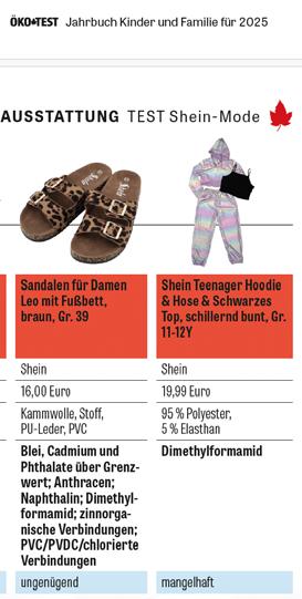 Non-compliant products that were removed from the platform after previous tests (right: Ökotest Yearbook Children and Families 2025, left: Greenpeace Shein Report 2022 “Taking the shine of SHEIN”).