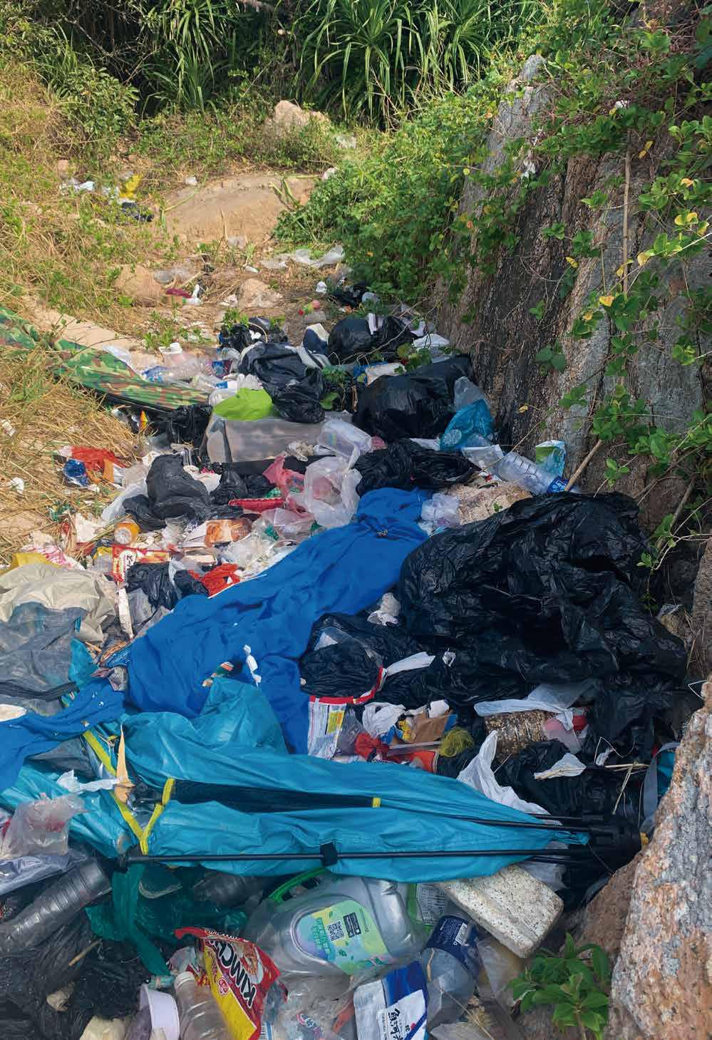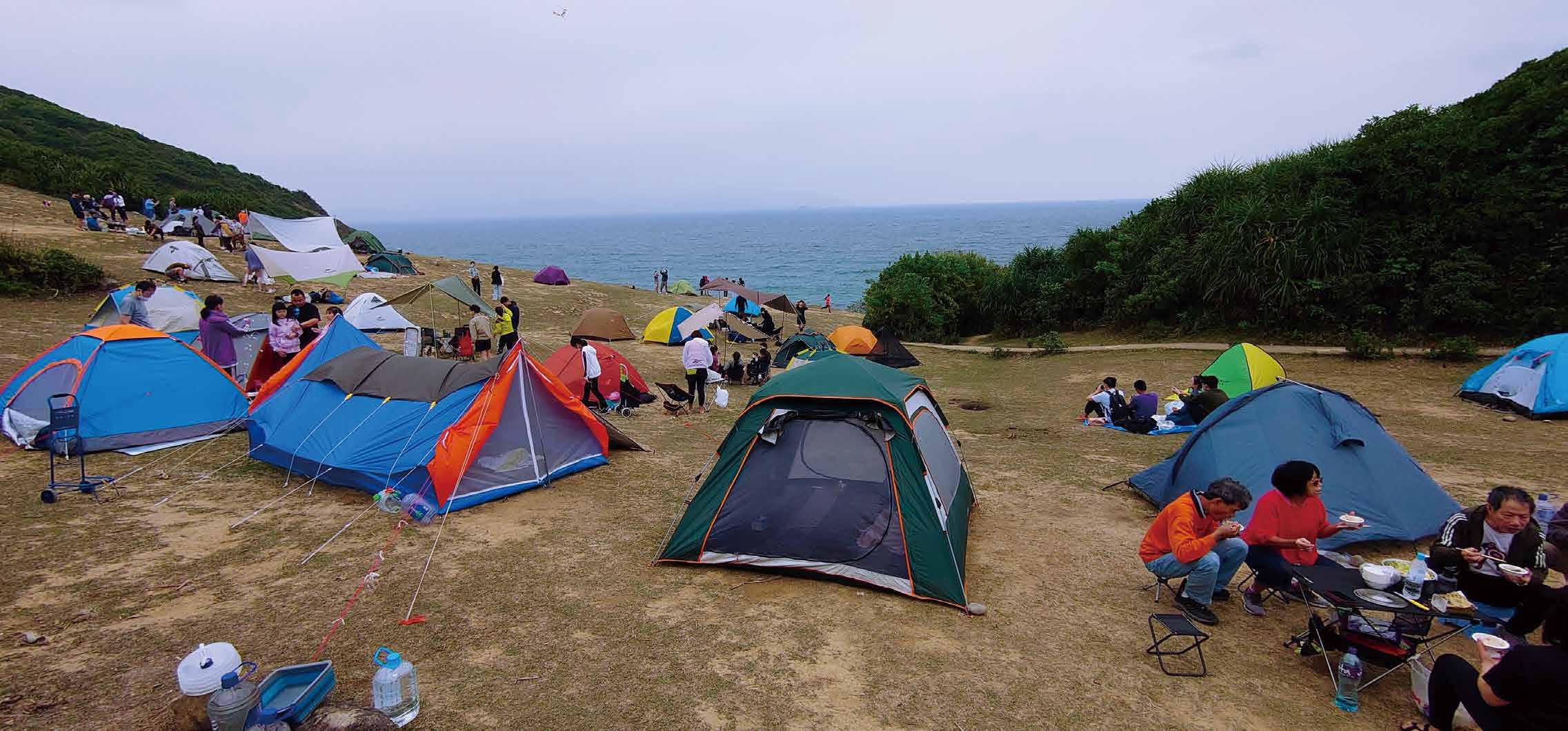 2021 年有傳媒報導[13]揭發,疫情掀起的露營郊遊熱 潮下,有遊人棄置大量露營用品如帳篷及食物於蒲台島沙 灘,導致島上垃圾堆積如山。事實上,香港觀鳥會等環保 團體自 2012 年起,持續促請政府將蒲台島納入郊野公園範 圍[14],卻一直未被正視,導致過度旅遊引致的環境破 壞持續。