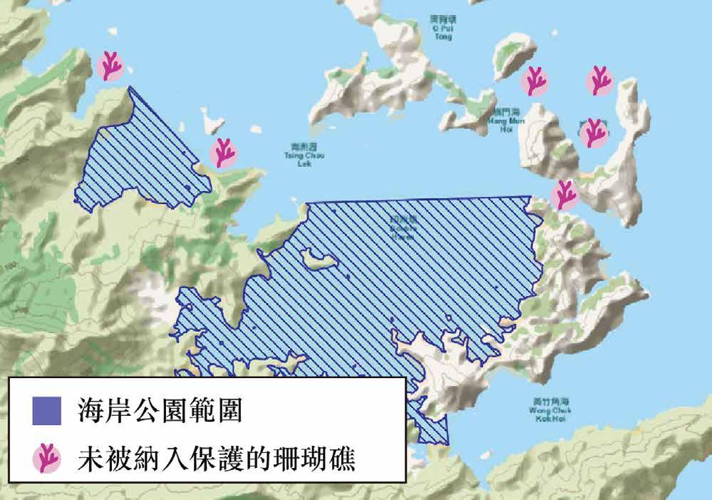 ▲ 圖8:娥眉洲珊瑚礁未被納入鄰近印洲塘海岸公園範圍