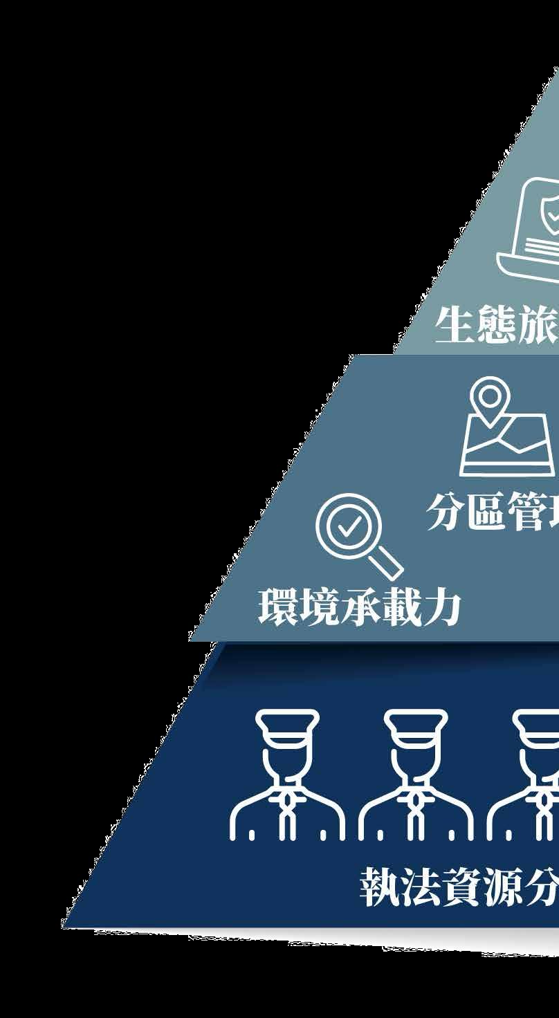 善用分配資源予漁護署: 制訂全面生態旅遊政策後, 漁護署可根據其政策方向及原則,建立專責「生態旅 遊管理隊」,增加前線巡邏及執法人手,考慮擴大權 限至保護區以外的生態熱點,確保「有法可執、有員 執法」。