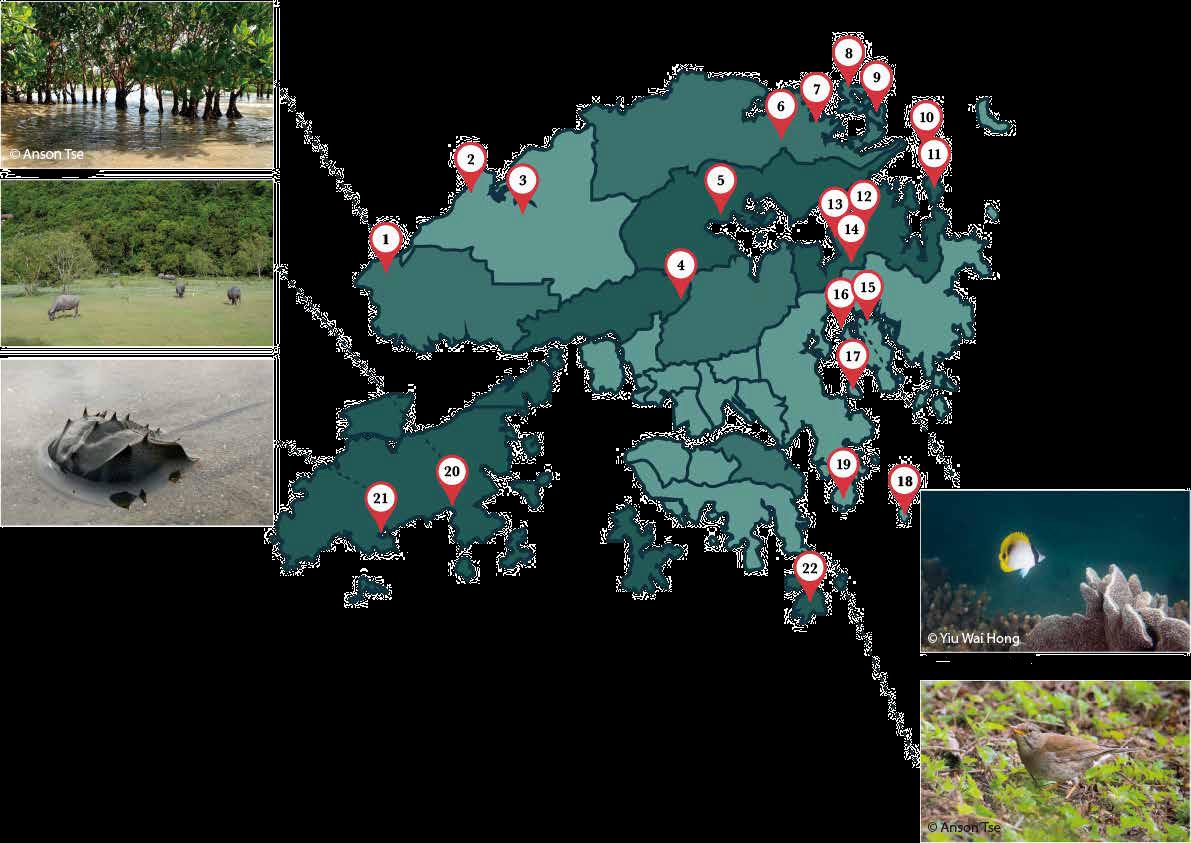資料來源:漁農自然護理署、規劃署、旅遊發展局、香港觀鳥會、香港戶外生態教育協會、世界自然基金會、Hong Kong Coastal Biodiversity GIS、Hong Kong Rocky shore Interactive Sear ch Engine (HKRISE)