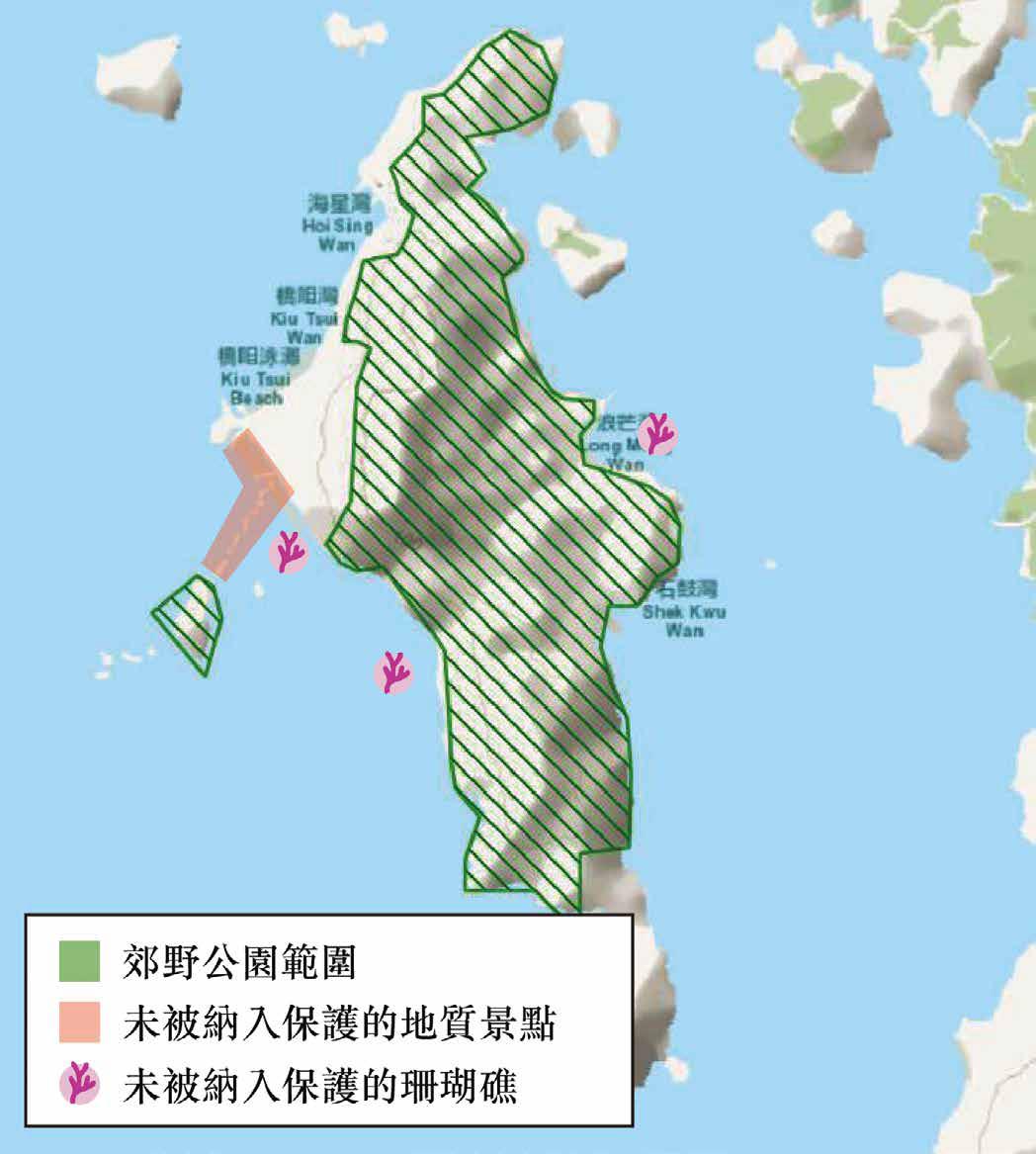 ▲ 圖6:橋咀洲珊瑚礁及地質景點 均未被納入橋咀郊野公園範圍