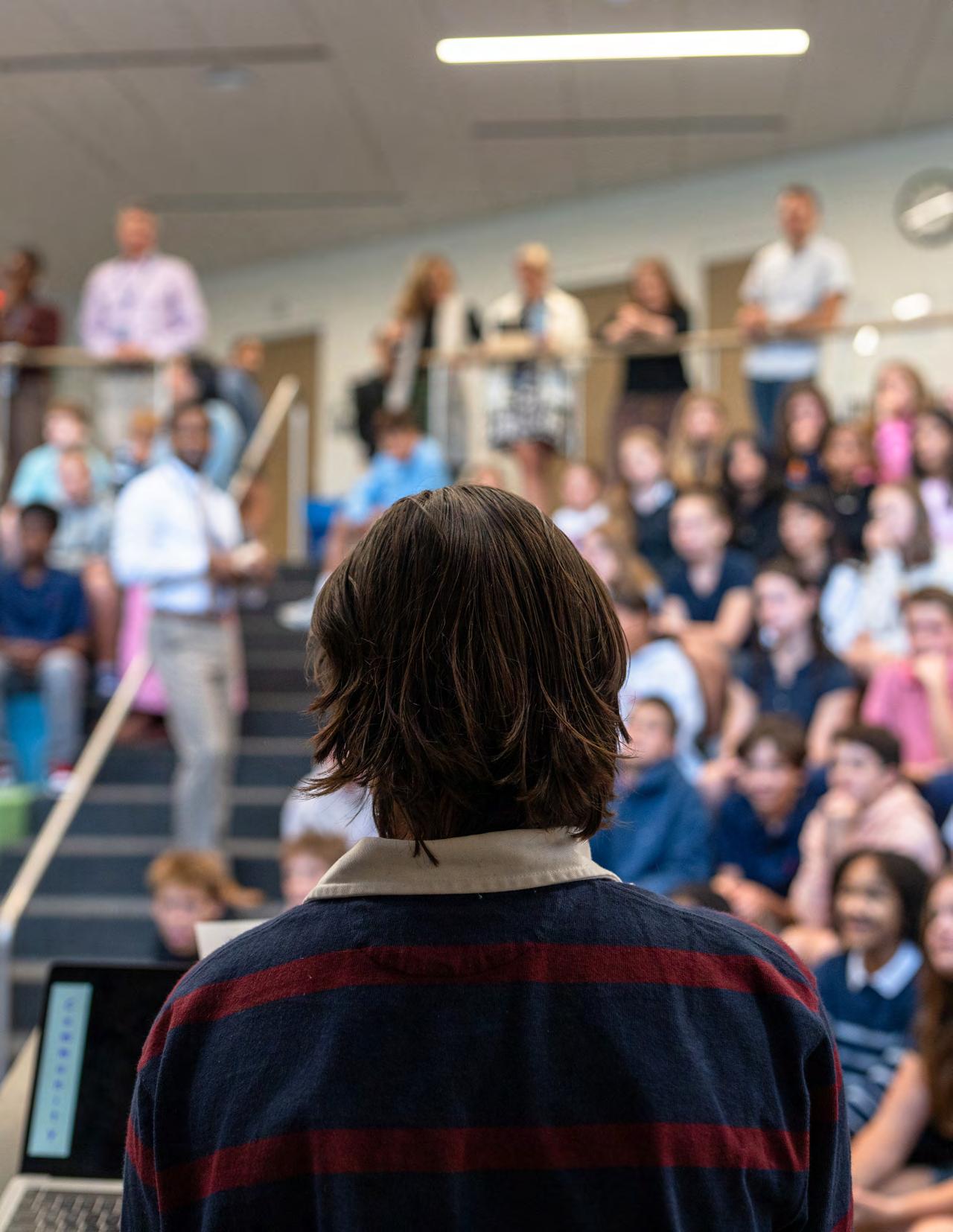 In eighth grade, all students participate in the Middle School Speech Program. Through a weekly class, they craft, revise, and practice a personal values-based speech, ultimately delivering it to the Middle School community in the Forum. The process builds confidence, clarity of thought, and leadership as students learn to express their beliefs with purpose and poise.