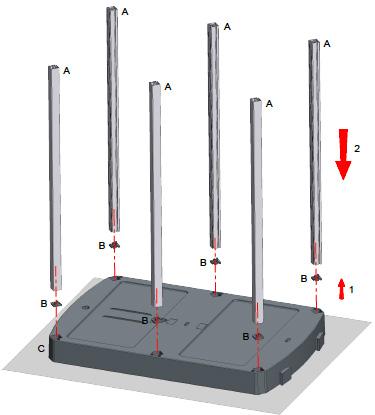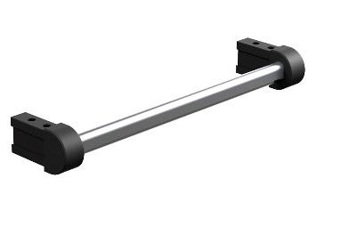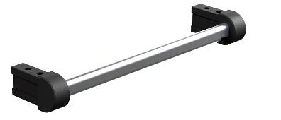 1.3 Add the small grey part on the base in the middle and screw the aluminium supports in the middle.