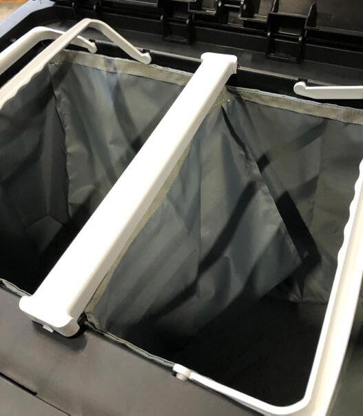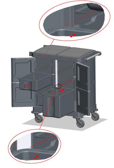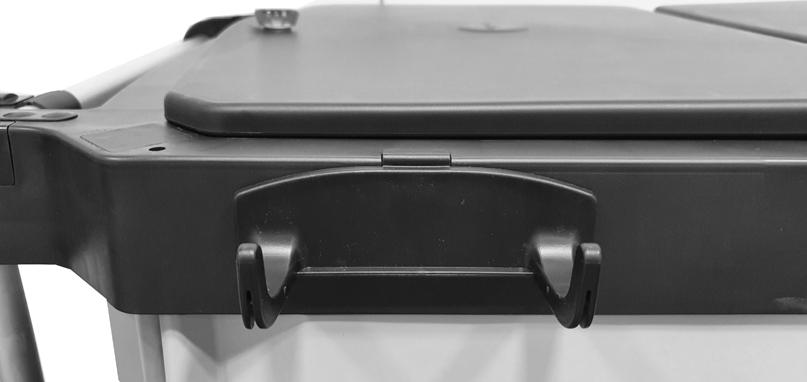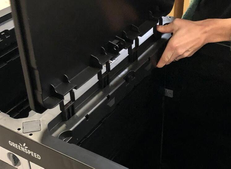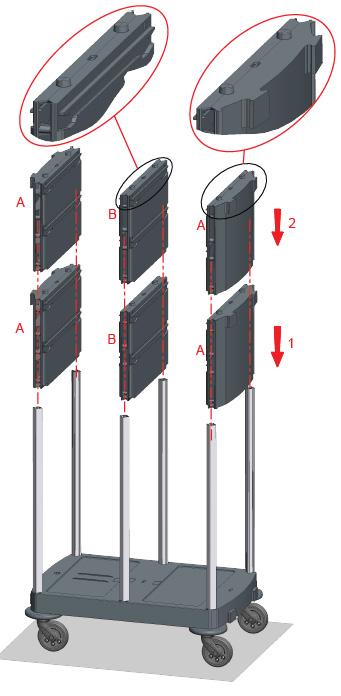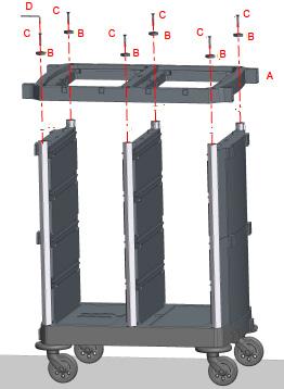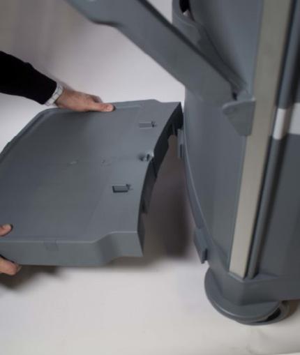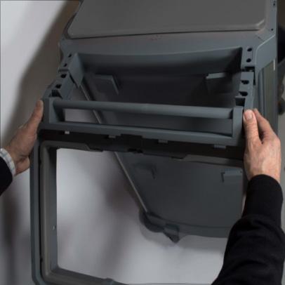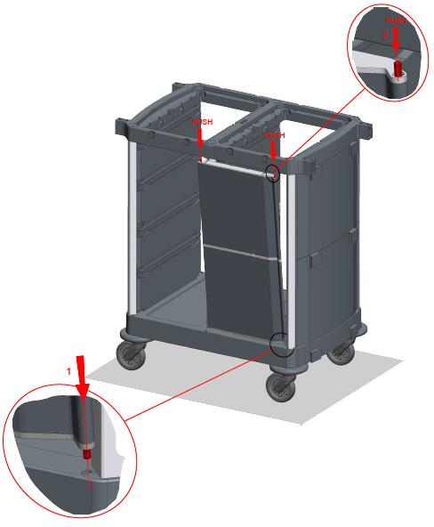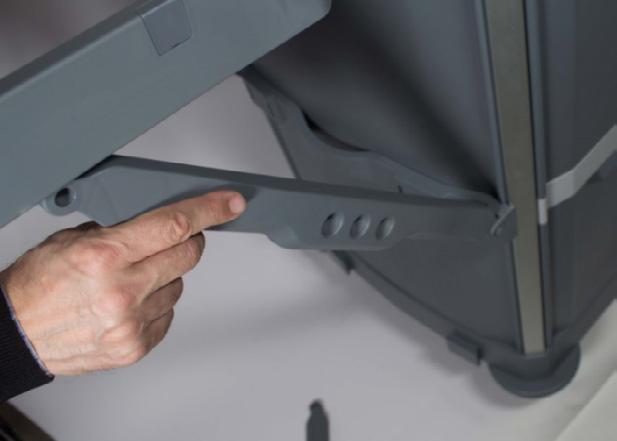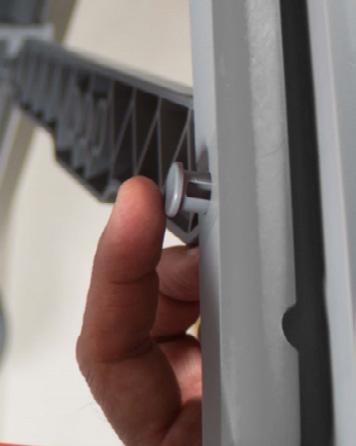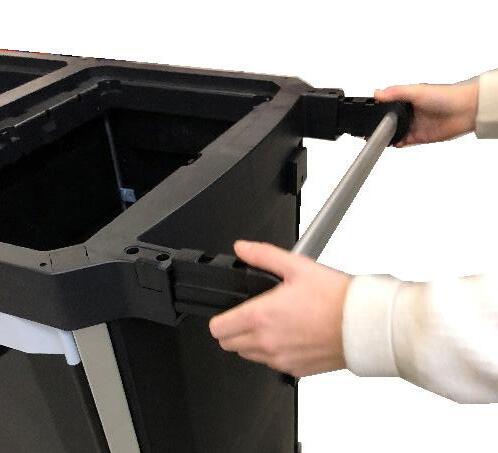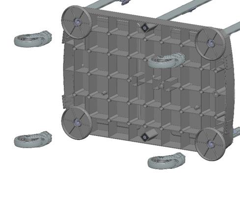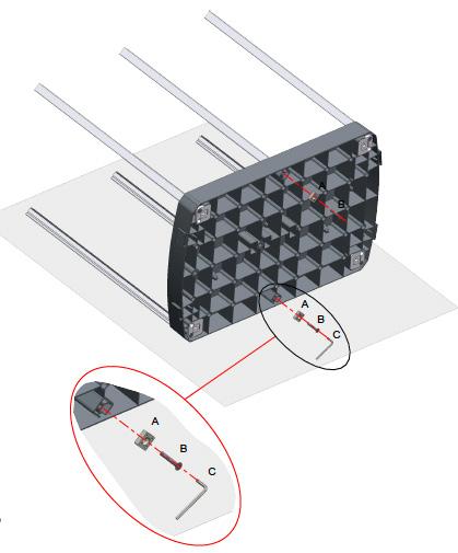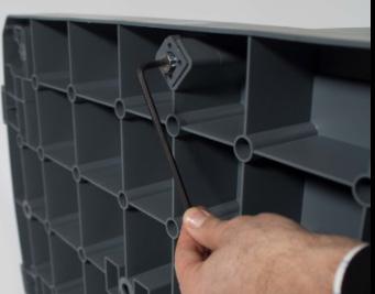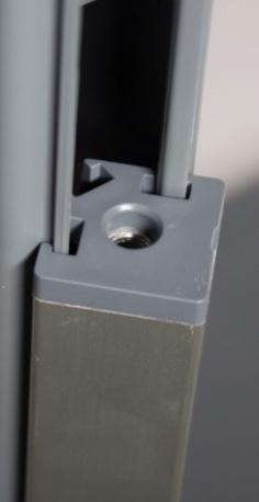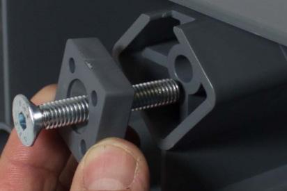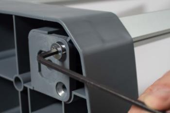 1.2 Add the large grey parts on the side of the frame and screw the aluminium supports on the sides.