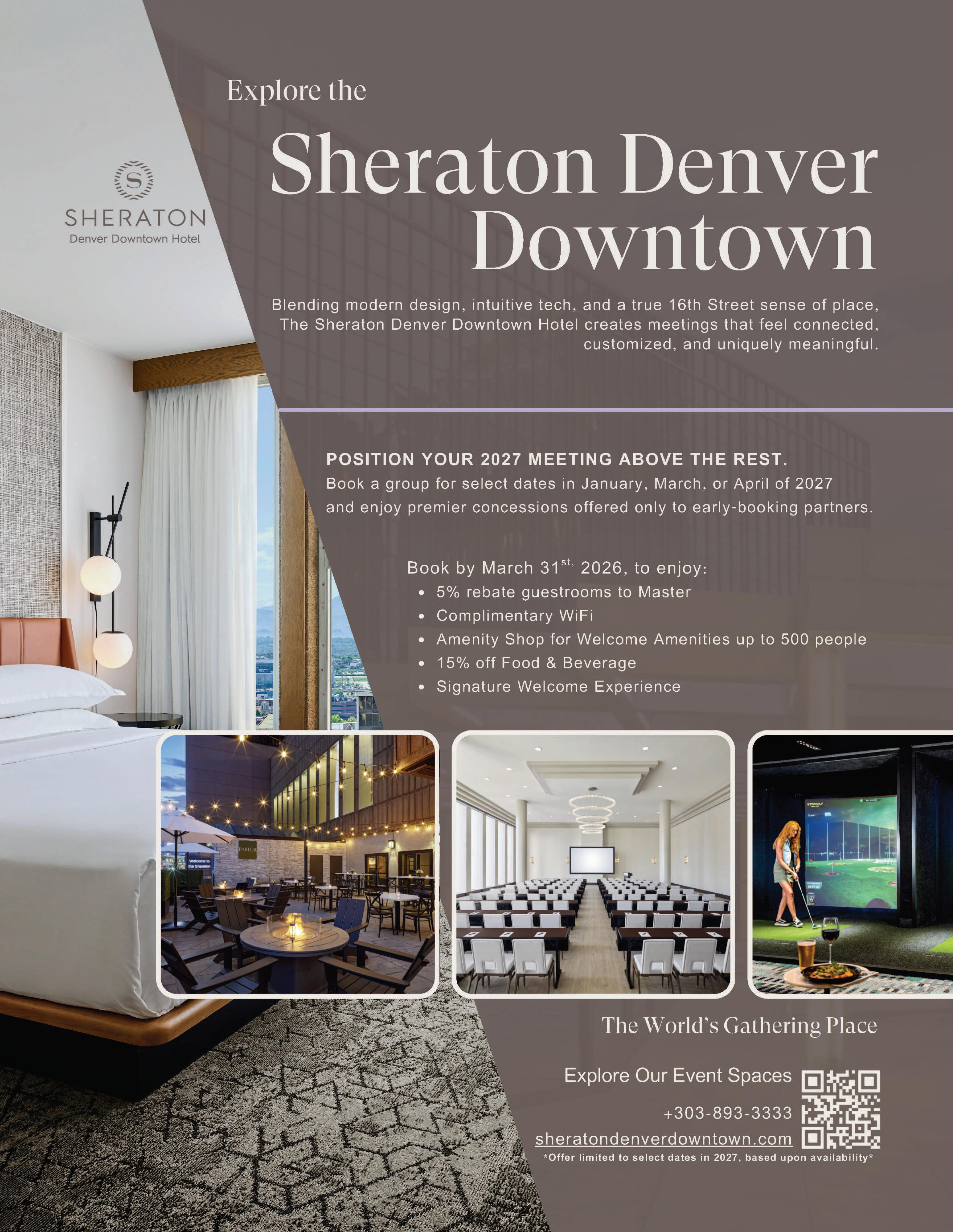 The pages between the covers of this magazine (except for any inserted material) are made from wood fiber that was procured from forests that are sustainably managed to remain healthy, productive, and biologically diverse. Colorado Meetings + Events is published quarterly. © 2026 Greenspring Media. All rights reserved. PRINTED IN THE U.S.A.