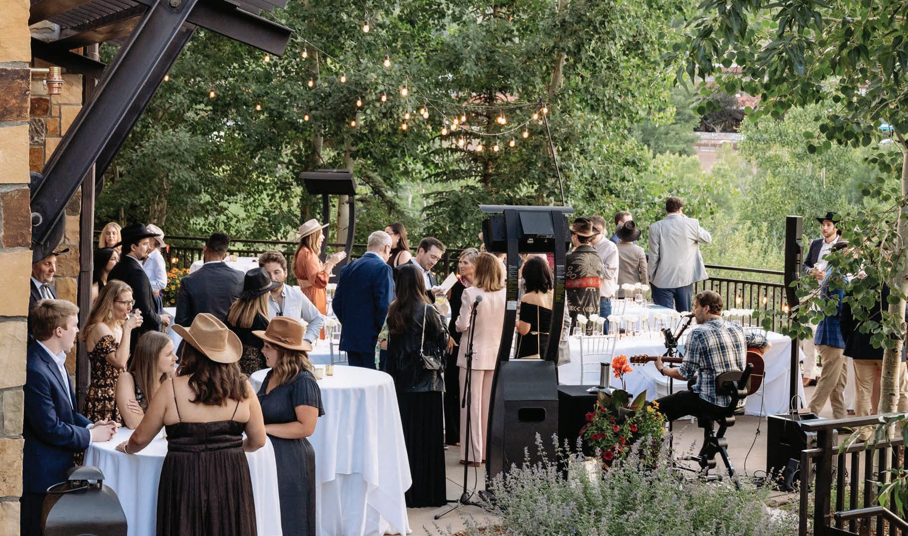 The 6,000-square-foot venue hosts groups of up to 164 people for seated dinners and more than 250 for receptions, with Aspen-based Epicure serving as the catering partner. Among the many amenities are a private lounge area, catering kitchen, green room, recording studio, two outdoor terraces, and upper- and lower-level art galleries.