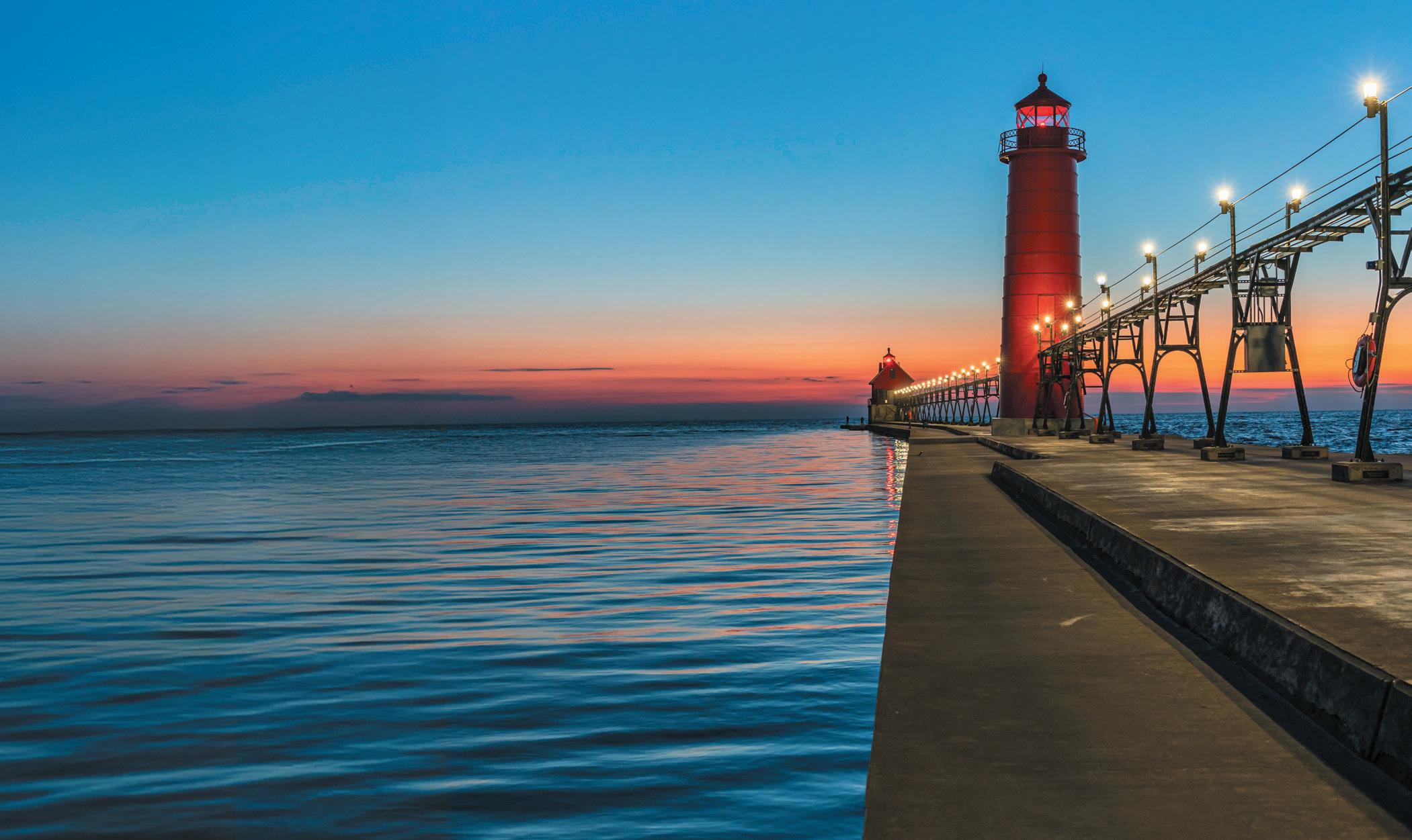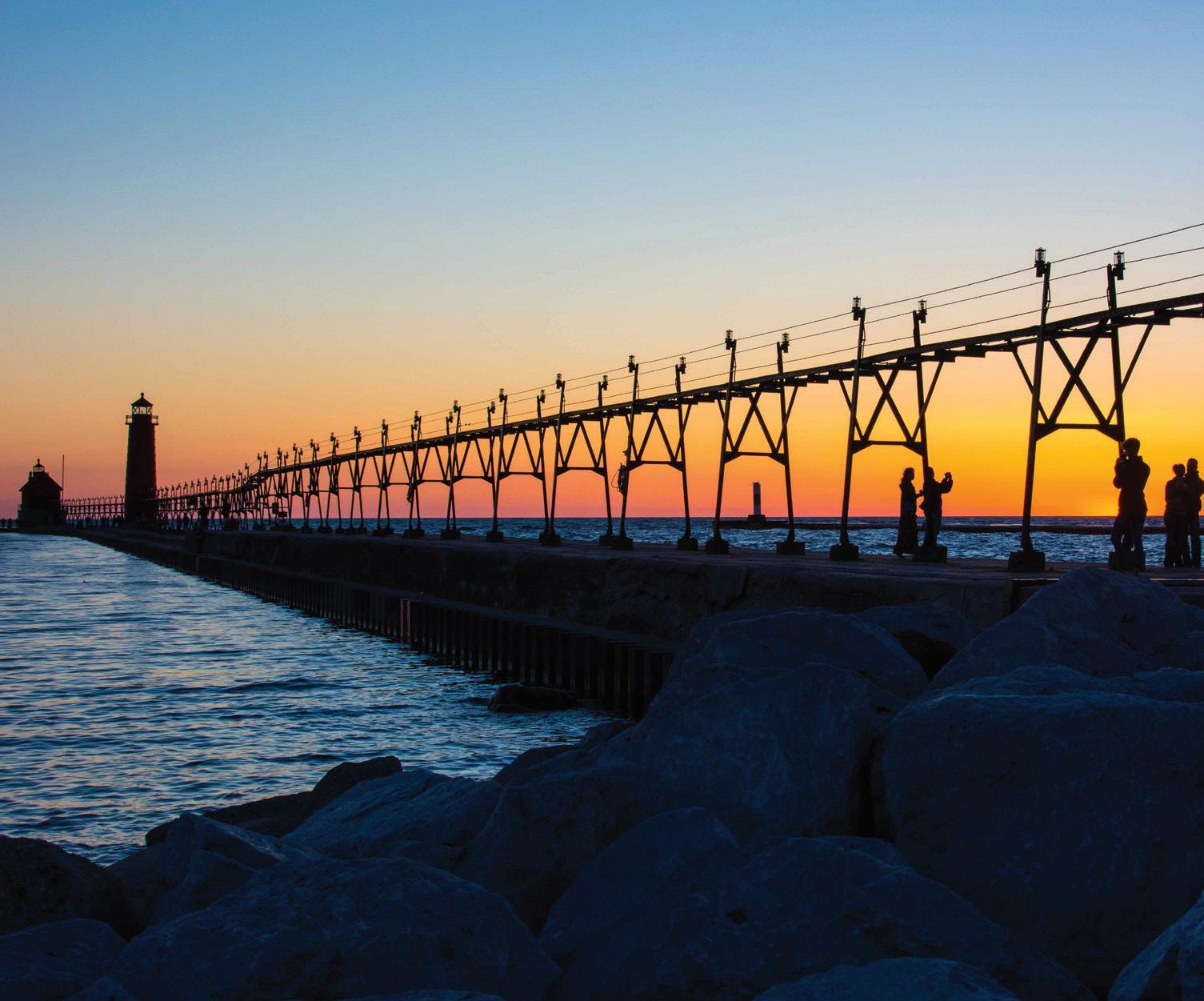 » IT’S ALL ABOUT THE WATER in Grand Haven. Designated the first Coast Guard City in 1998 and home to the 100-plusyear-old summer Grand Haven Coast Guard Festival, the city offers meeting planners a winning combination: waterfront venues with stunning Lake Michigan views, one-of-a-kind meeting spaces, and easy highway access.