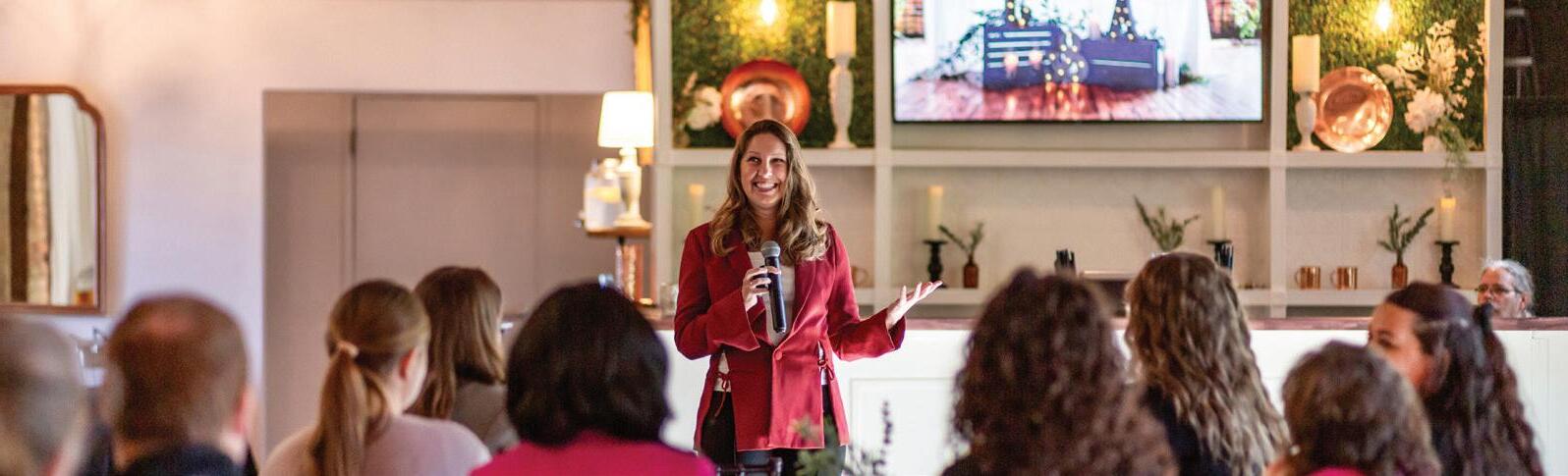 Stone grew up in Howell and attended Western Michigan University in Kalamazoo. She majored in communications intending to go into radio—which she did for about 13 years in Grand Rapids. That was when she got involved with promotions and events, discovering her love for the mechanics behind making those things happen. She transitioned to a position at Experience Grand Rapids, starting as an executive assistant to the president and board. Not feeling busy enough, she got involved in the planning of familiarization trips for meeting planners, leading to a position on the organization’s events team.