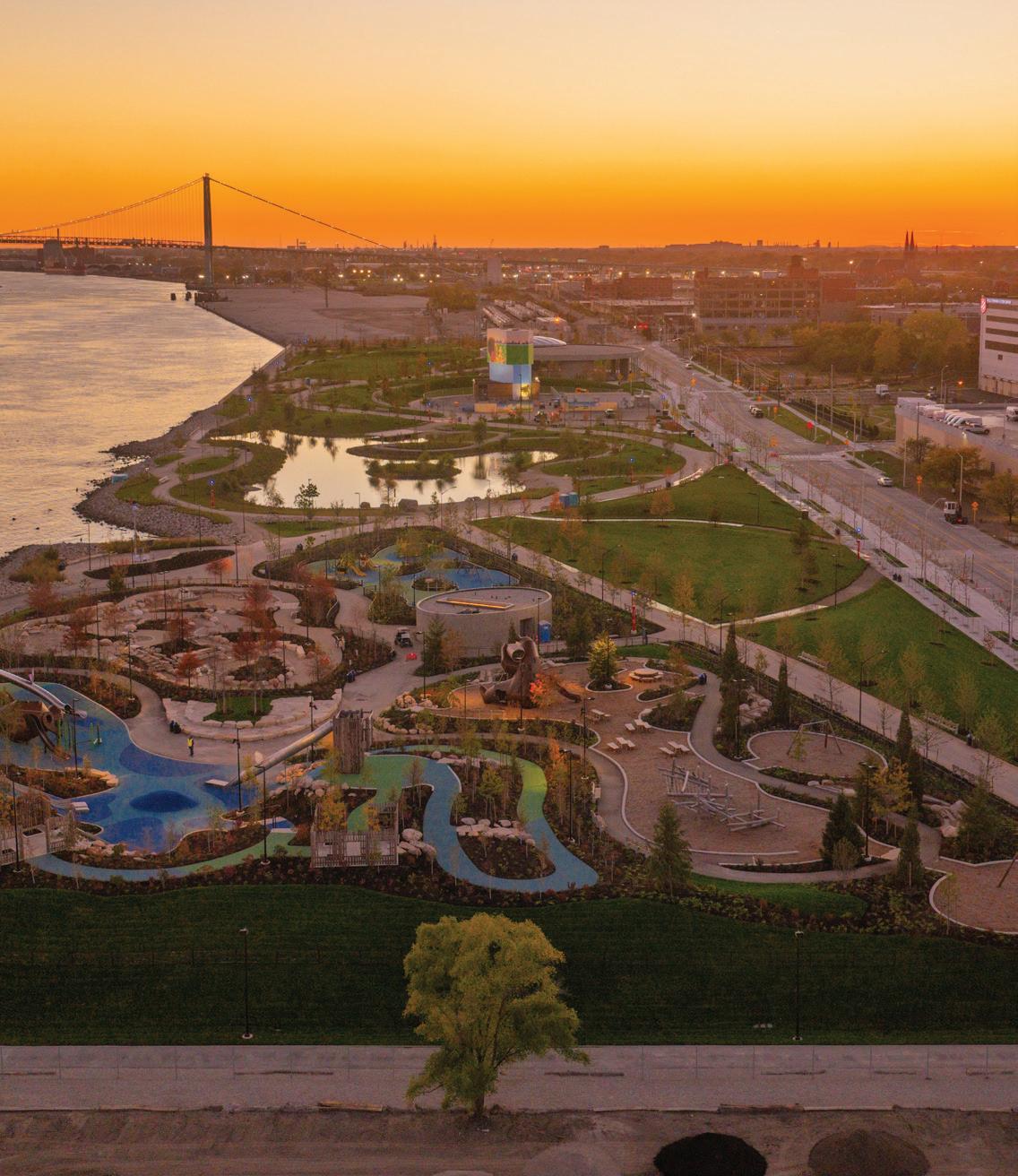 The conservancy unveiled the latest phase of the riverfront’s transformation—the completion of Ralph C. Wilson, Jr. Centennial Park—last October. The picturesque park includes the William Davidson Sport House with indoor basketball courts and event space; the DTE Foundation Summit, with its expansive lawn for gatherings; and Delta Dental Play Garden.