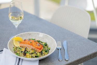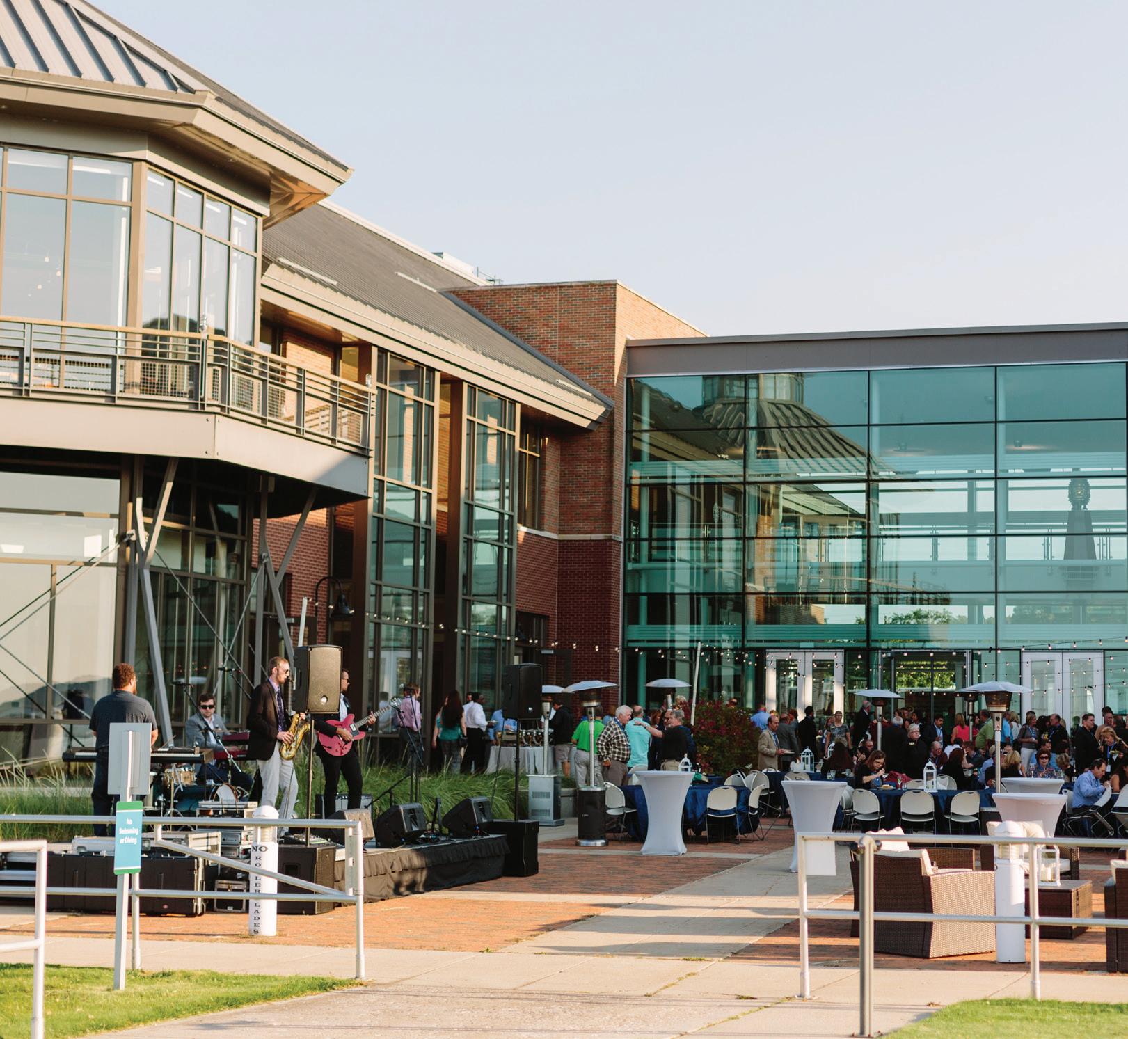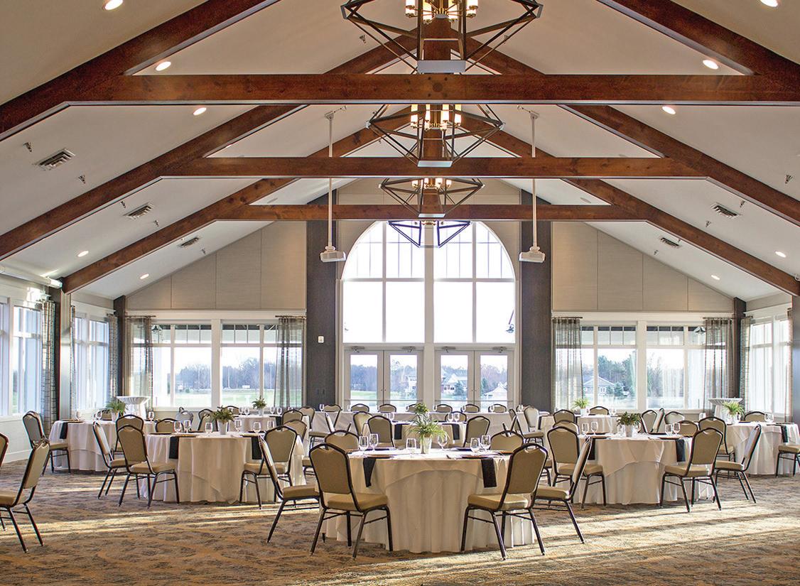 VENUES: The newly renovated Founders Event Room at American Dunes Golf Club overlooking the Jack Nicklausdesigned golf course supports a range of meeting types, while Loeks Retreat Center at Camp Blodgett in West Olive offers half- and full-day rentals, including access to team-building activities like ropes courses, rock climbing, and more. The waterfront Tanglefoot Park in Spring Lake is a casual setting for up to 299 with a new pavilion, catering kitchen, outdoor