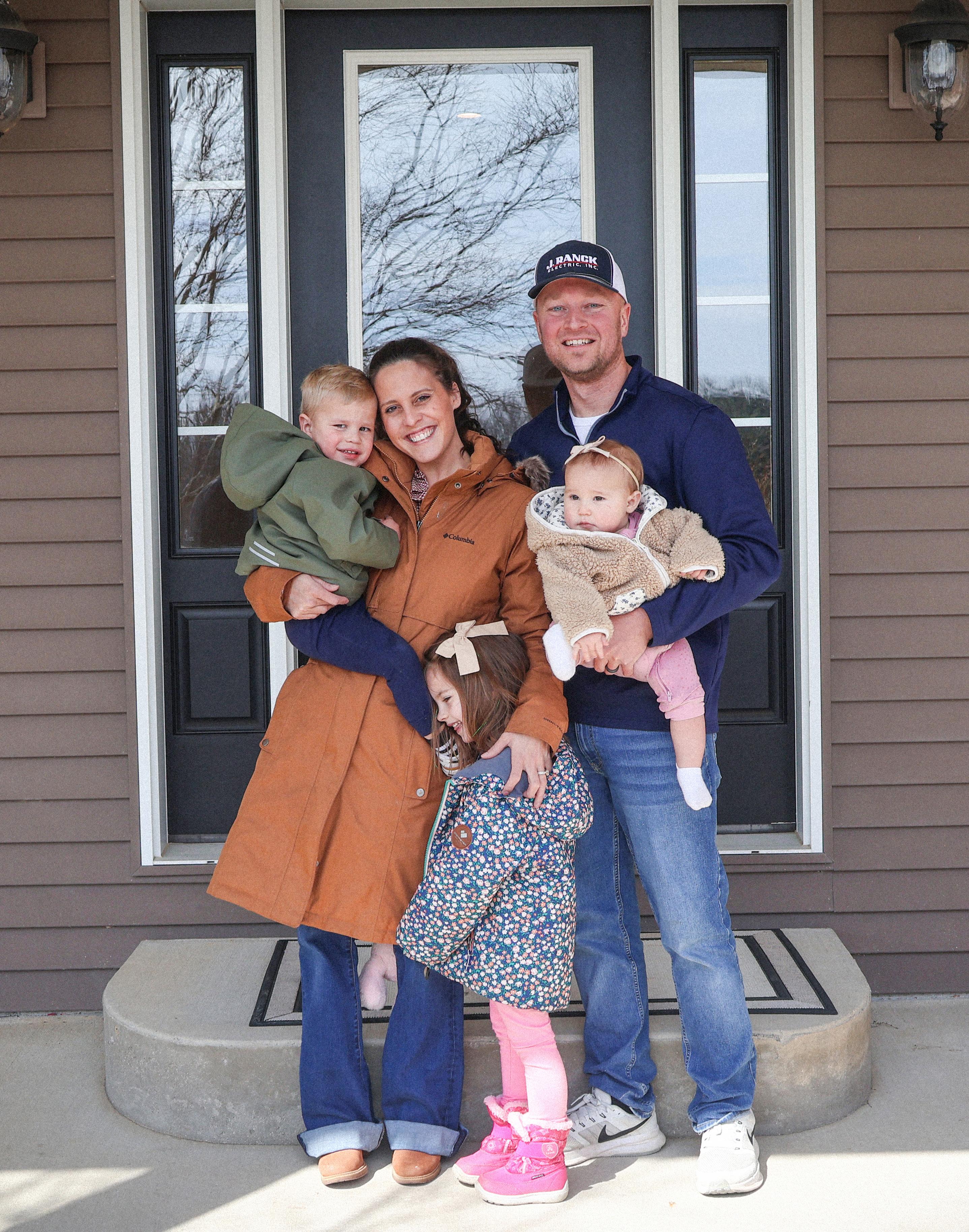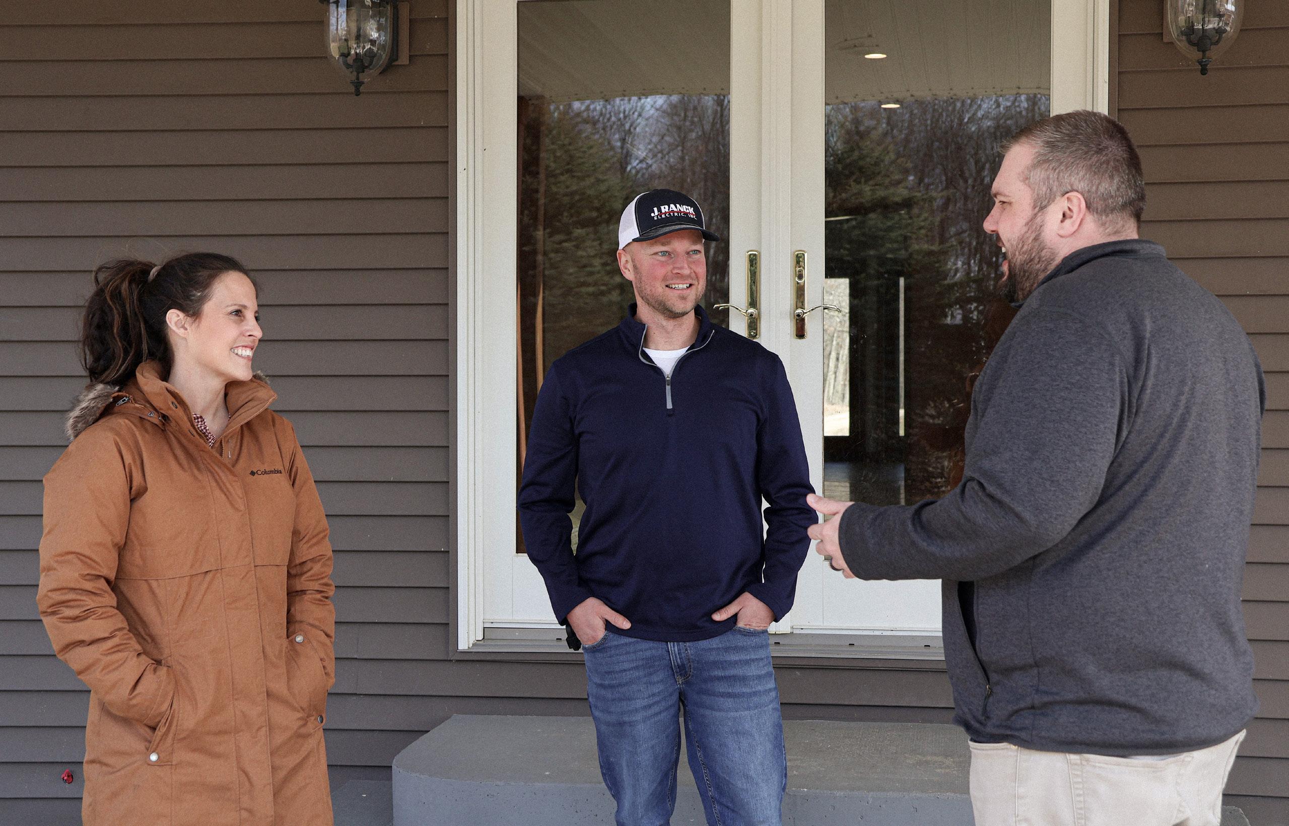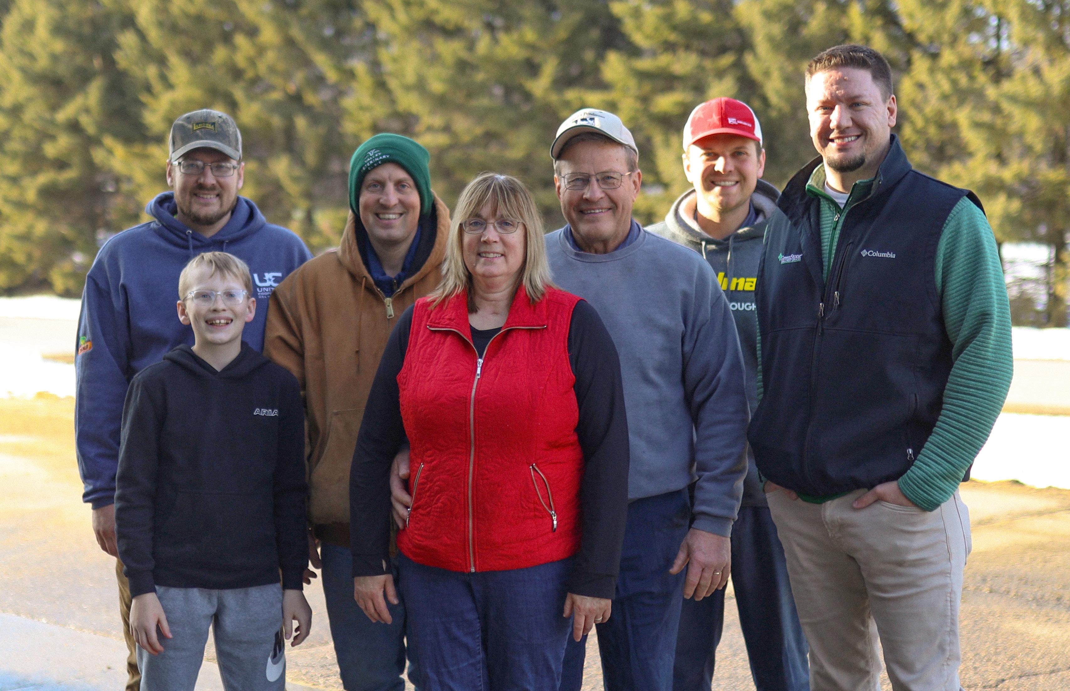 ◀ Pictured left: Three generations of the Schmidt family stand with Senior Tax Accountant Eric Vandivier (far right) outside their family farm in Bonduel, Wis.