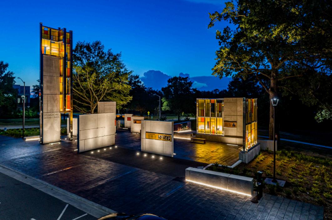 Sycamore Hill Gateway Plaza serves as an opportunity to celebrate the rich heritage of Downtown, a thriving urban African American neighborhood, and commemorate Sycamore Hill Missionary Baptist Church, a keystone of the community. Designed as a contemplative space, the interpretive plaza serves as a place for healing and celebratory remembrance. The plaza will reflect on the past and preserve the vital history of the community which once stood here.