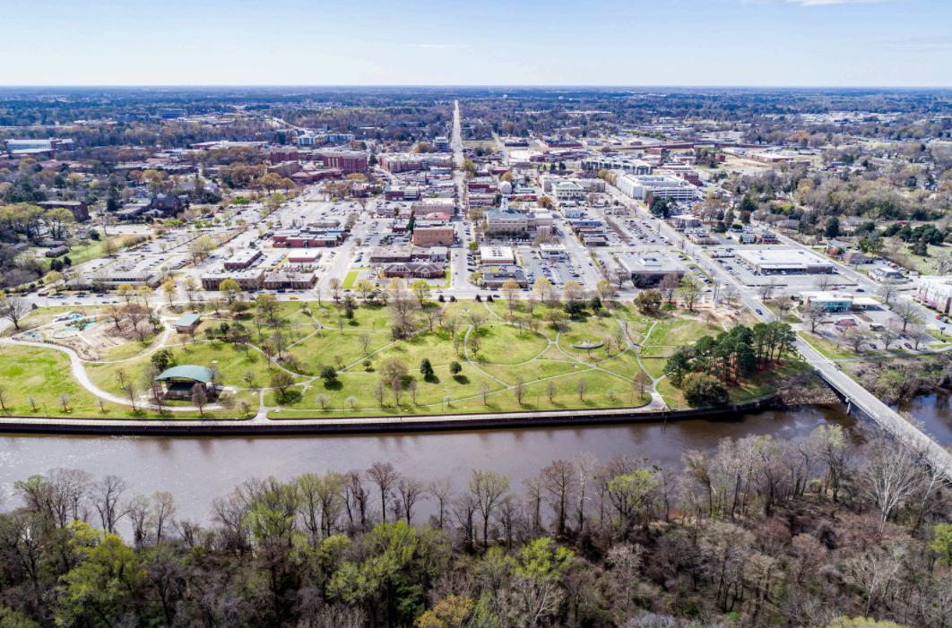The Town Common is 19 acres of open which includes a 1,500' esplanade along the Tar River, Town Creek Bridge and South Tar Greenway, paved walkways, benches, boat access area, handicapped accessible kayak launch, fishing pier, amphitheater, inclusive playground, restroom building, pavilion, sundial, and the Sycamore Hill Gateway Plaza. 105 E. First Street Greenville, NC 27834