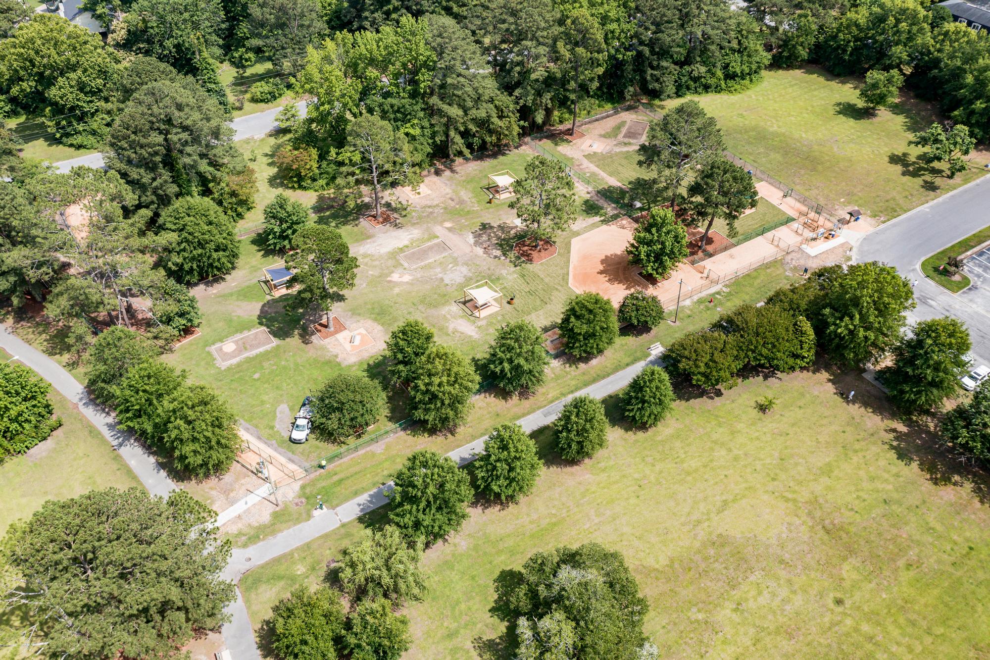 Thomas Foreman Park is a 10-acre park with a picnic shelter, a playground, batting cages, and is home to Greenville's Jackie Robinson Baseball League.