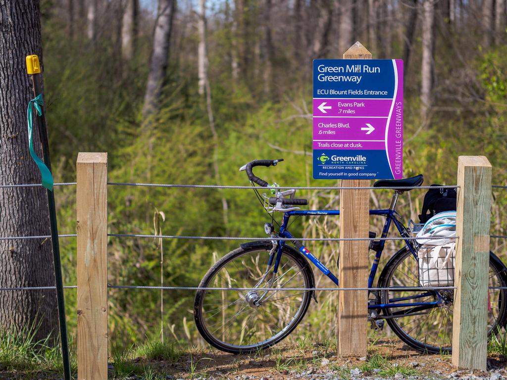 The South Tar Greenway is 3.1 miles of greenway. The northwest terminus trailhead is located at the Town Common. The trail goes east and follows the southern bank of the Tar River, then at the confluence of the Tar River and Green Mill Run, turns south and follows the western edge of the tributary. The southeast terminus trailhead is located at Greensprings Park. This greenway is the second in the city. After the 1.5 Green Mill Run Greenway.