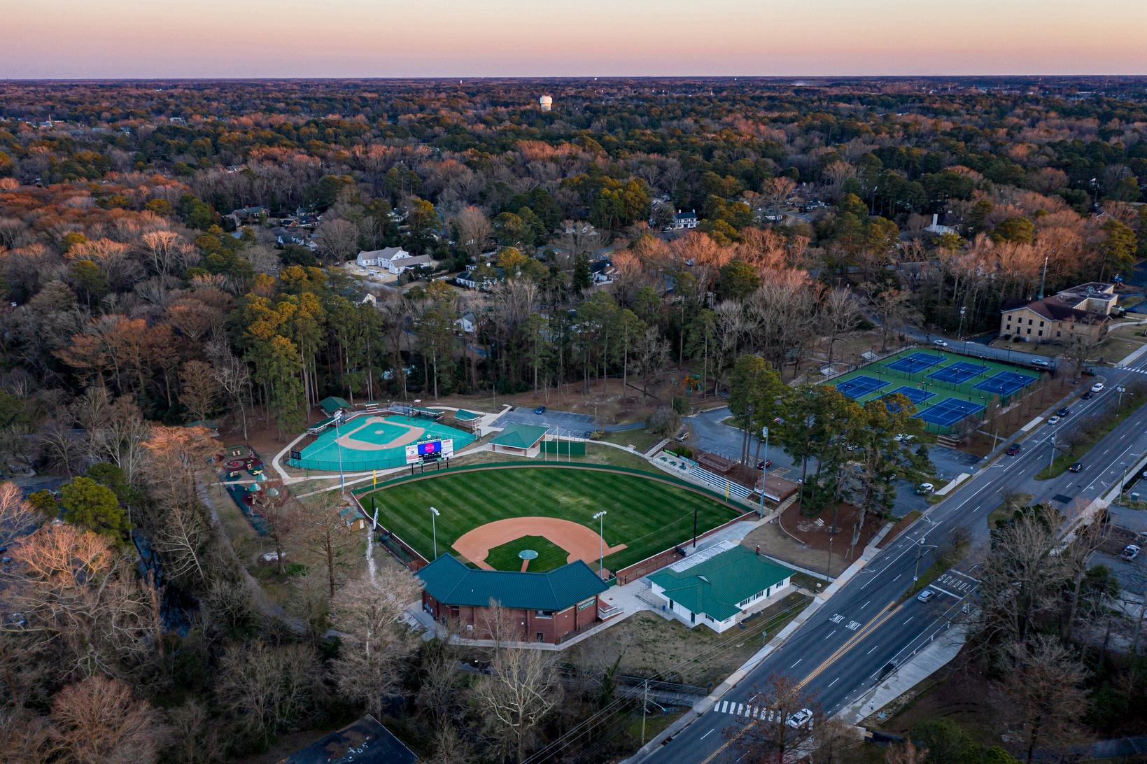 The Perkins Athletic Complex is named after James and Mamie Perkins for their generous donation. The complex consists of three (3) baseball fields, multipurpose area, and two (2) batting cages. The fields are home to Greenville Little Leagus baseball from MarchNovember. The complex is also home to the Magnolia Arts Center.