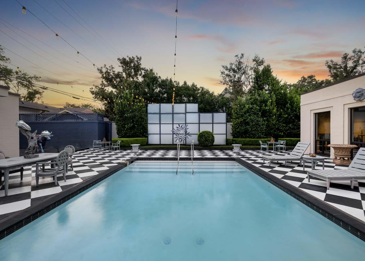 This stunning River Oaks home, initially designed by renowned architect John F. Staub, has been beautifully transformed. The first floor boasts light-filled rooms with expansive glass walls, offering views of lush gardens and an outdoor pool. The formal living and dining rooms are perfect for gatherings and feature ample wall space for art. The luxurious primary suite includes a spacious walk-in closet and dressing area. A sophisticated library and cozy sitting room provide quiet spaces, while the kitchen is discreetly tucked away. On the second floor, two additional bedrooms with en-suite baths ensure a welcoming environment for guests. The separate pool house features a full bath and a party room with an expanded bar, perfect for entertaining. The gardens are a masterpiece with lush turf, sparkling fountains, and whimsical ironwork sculptures. A private guest house with a mini kitchen and full bath adds convenience, and a full-house generator ensures peace of mind. All per Seller