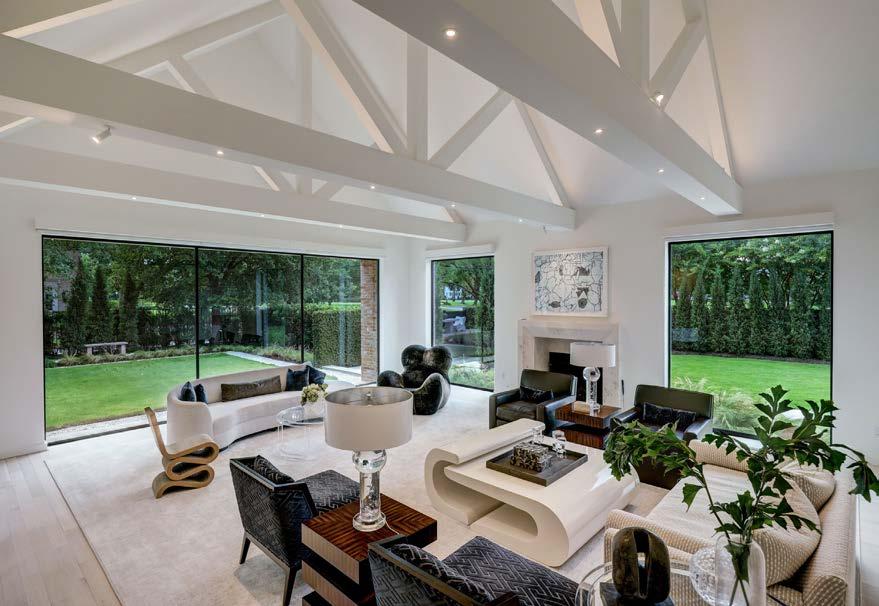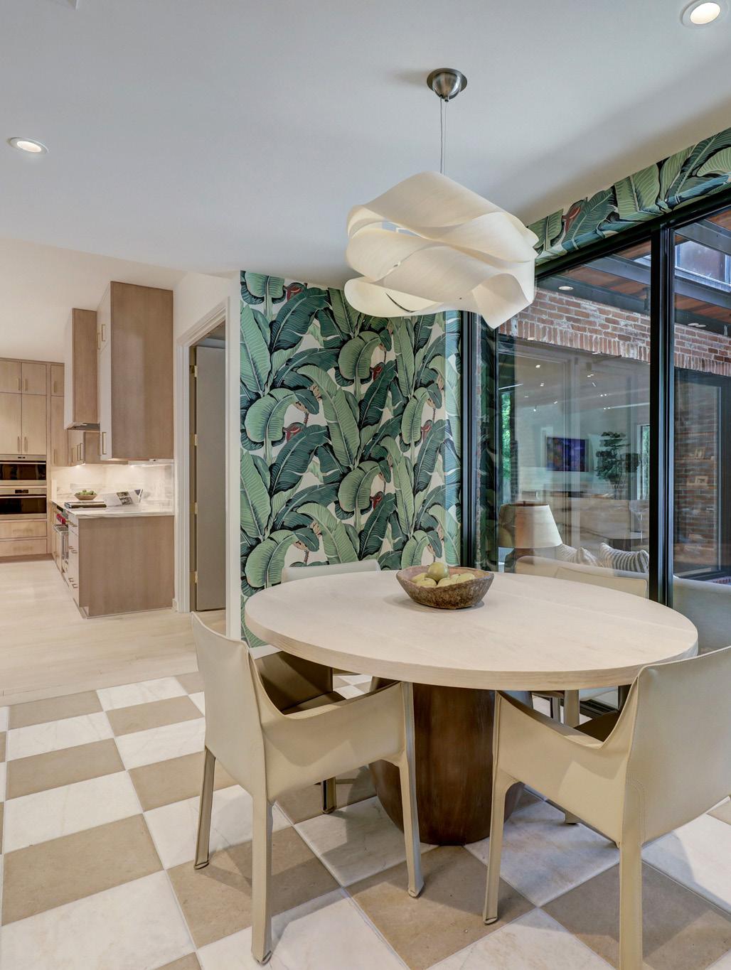 California modernism meets the welcoming warmth of Houston in this private half-acre Belgian contemporary estate situated in the heart of River Oaks Country Club Estates. The residence was originally designed by Houston legend, SI Morris and built by and for Houston construction mogul Leo Linbeck. The home recently underwent an extensive renovation in 2022, led by Chelsea McDermott of Chelsea Interiors, Barry Brown of Brownridge Builders and Michael Hutchins of Greentouch Design. The 7 bedroom residence is reimagined with floor-to-ceiling windows, natural light and clean lines creating a seamless transition between indoor and outdoor spaces. The home centers on natural wood features, neutral tones, earth-hued stone, and a living fiddle leaf fig tree in center of the home incorporating subtle nods to nature and cultivating the calming qualities of bringing the outdoors in. The residence includes 2 spacious outdoor covered living-areas, a soothing contemporary water feature, luxurious swimming pool/spa, and is surrounded by a wall of nearly 100 soaring Juniper trees.