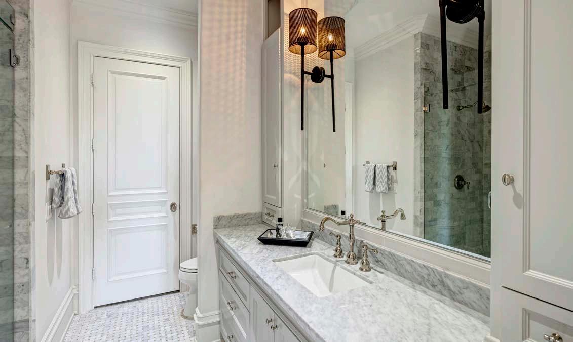 Deep porches with Ionic columns and covered Loggia with hanging gas lamps