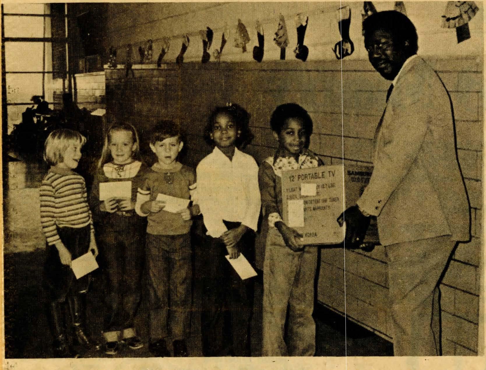 TheDillwynPrimacySchool's PTAendeditsfundraiserDecember8. winners of prizes receivedtheirawardsfromOssieHarris,principaloftheDillwynPrimarySchool.Fromleftare JennHerSteger, $25; CindyDavis, $5; JohnMaxey,$15; Jackie Brown, $5. CrotezBrownwas lrinneroftheblackandwhitetelevisionset.TheclassroomwiththehigbestsaleswasMrs.Debra Hucks'thirdgradeclass.Theywillbetreatedtoanicecreampartyatalaterdate.