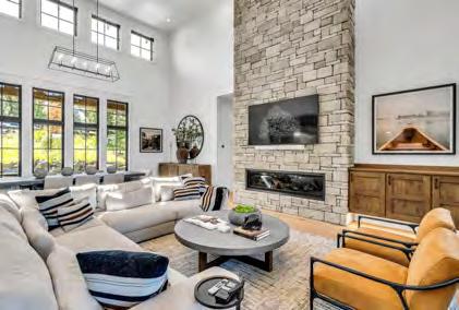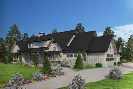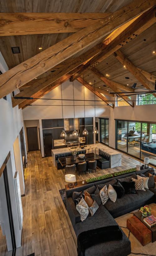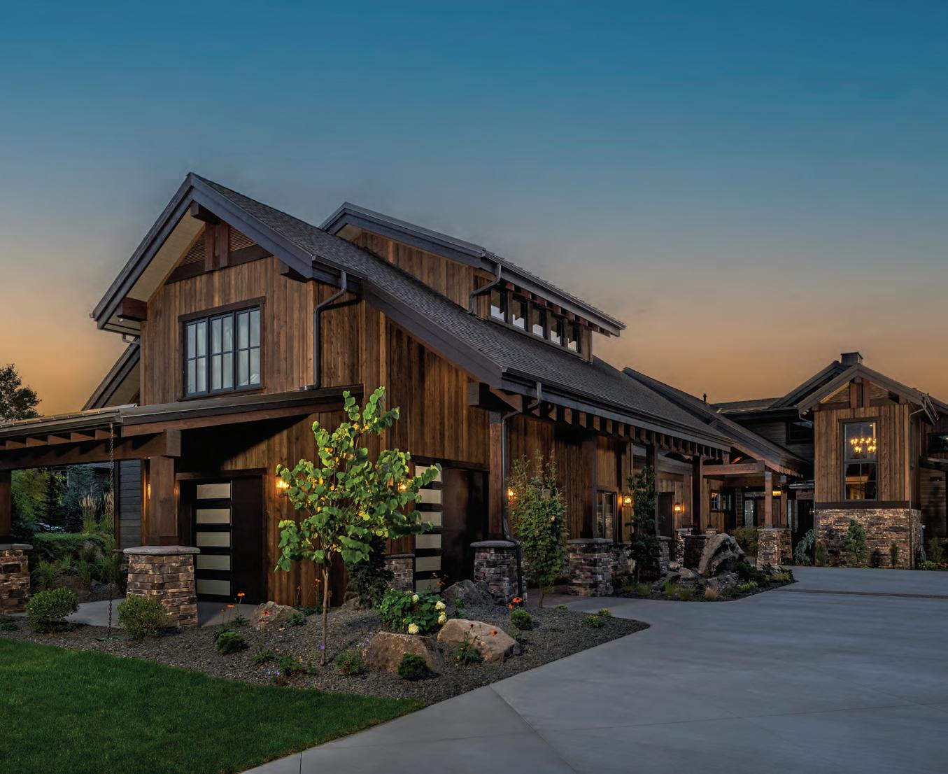 There’s a sense of history and nostalgia with today’s modern mountain architecture, especially with the visible craftsmanship seen in the iron and woodwork. These bold works of art are showcased best in open oor plans by using local materials with a comforting color palette and a combination of metal, cement and natural wood accents. Finishing the home with low maintenance landscaping retains the ruggedness of living in the mountains. The idea behind this style is to marry natural and man-made elements so that the home ts perfectly in its native surroundings while maintaining a modern feel.