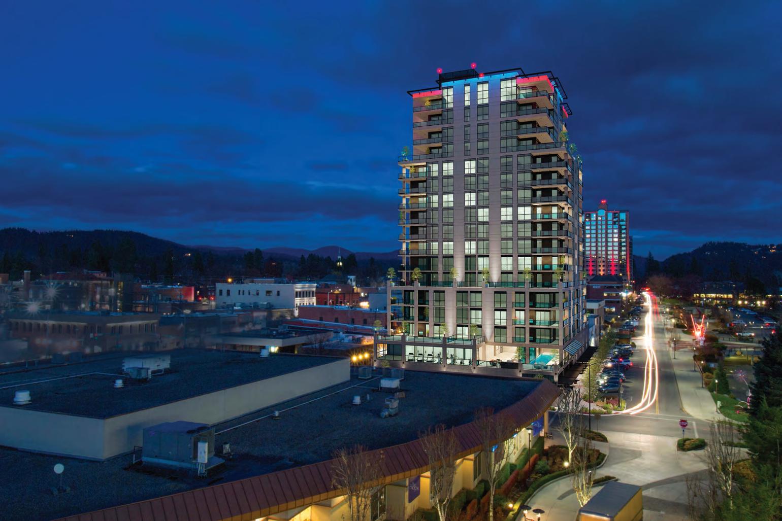 The Thomas George in North Idaho features 60 luxury condominiums, just steps from Lake Coeur d’Alene, downtown restaurants, spa treatments and shopping. Standing at 18 stories with construction underway, residences start under $800,000 and o er 1, 2 or 3 bedroom units.